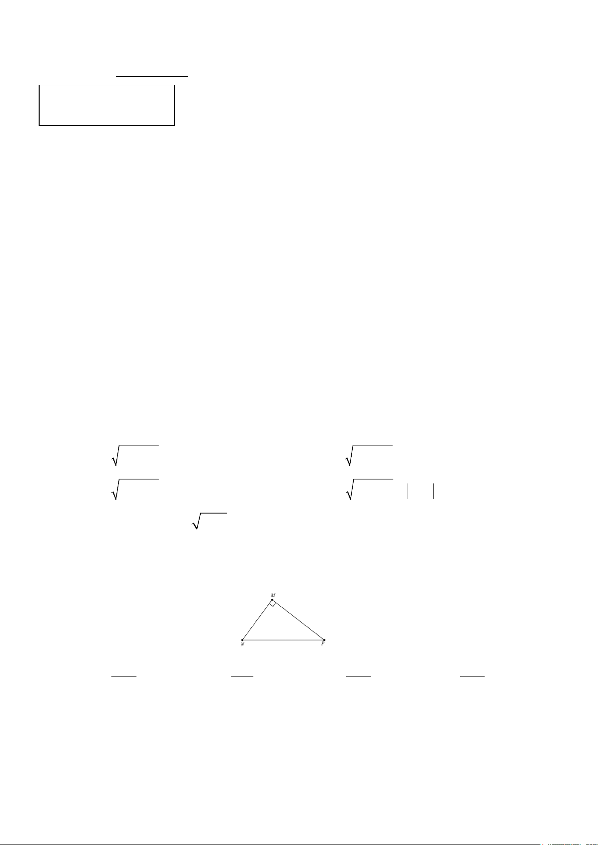 Câu 7. Cho tam giác MNP vuông tại M. Khi đó SinP bằng: A. MN NP . B. MP NP . C. MN MP . D. NP MN .