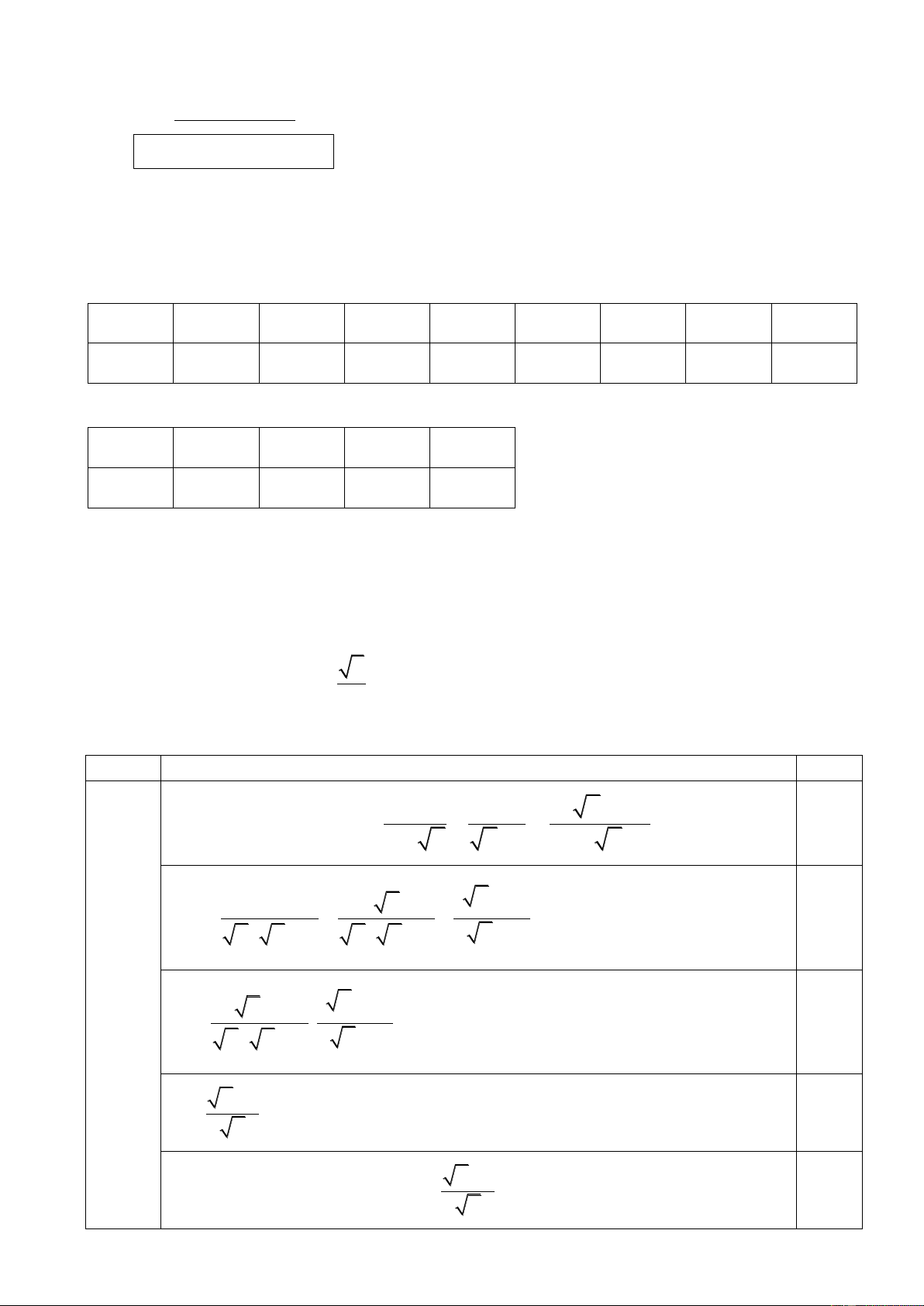 Câu 10. (0,5 điểm) Kết quả 2x y −1 = 1 0 0 Câu 11. (0,5 điể 7 m) TanC = 3