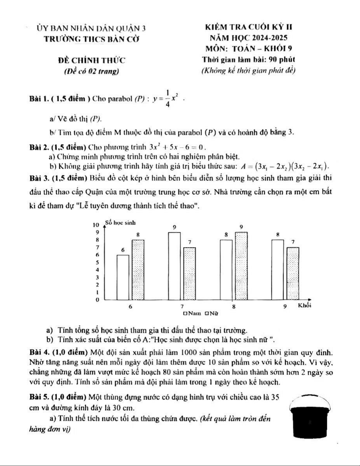Đề cuối kỳ 2 Toán 9 năm 2024 – 2025 trường THCS Bàn Cờ – TP HCM