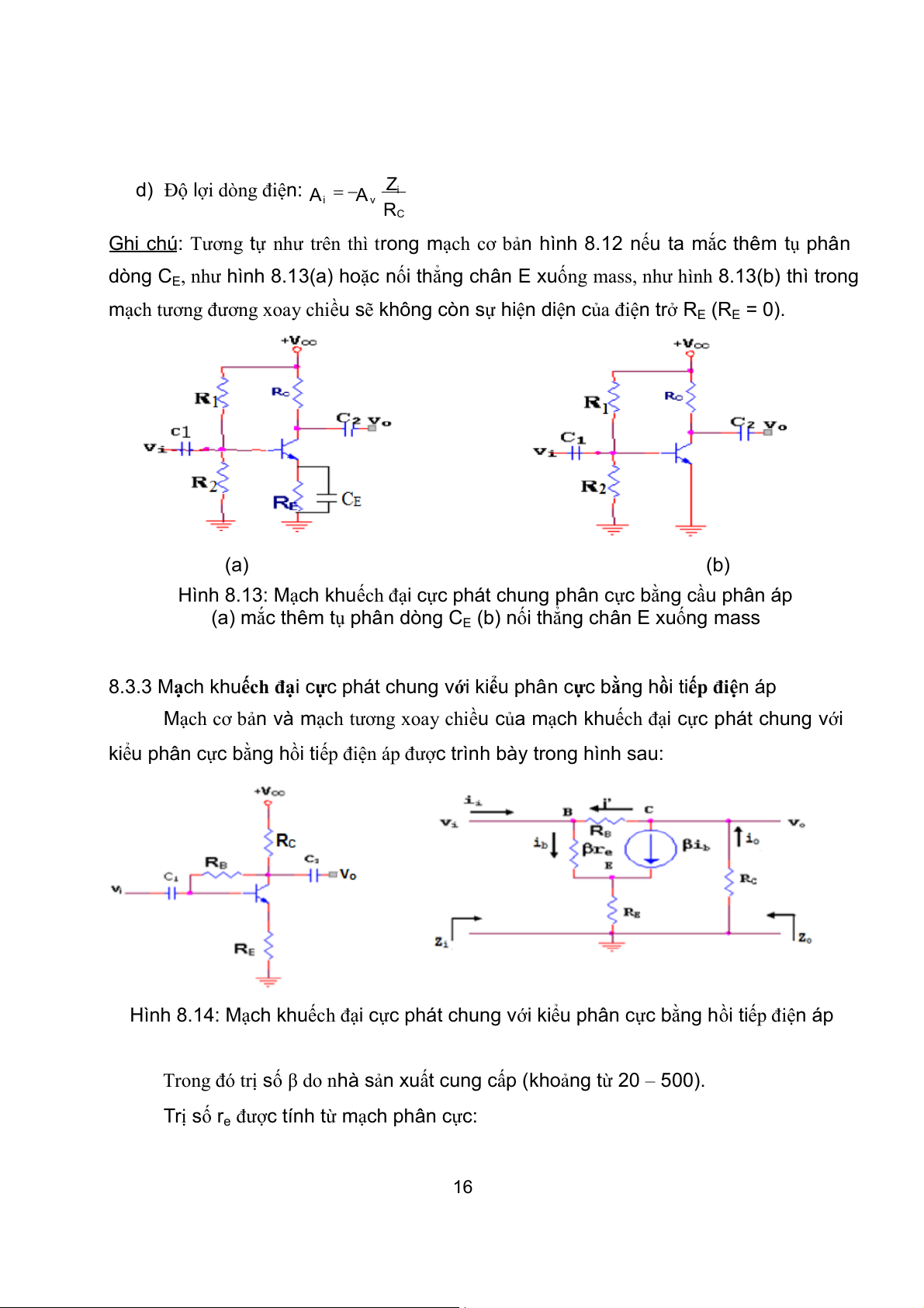 Ghi chú: Tương tự như trên, ở mạch hình 8.14, nếu mắc thêm tụ phân dòng CE vào cực E