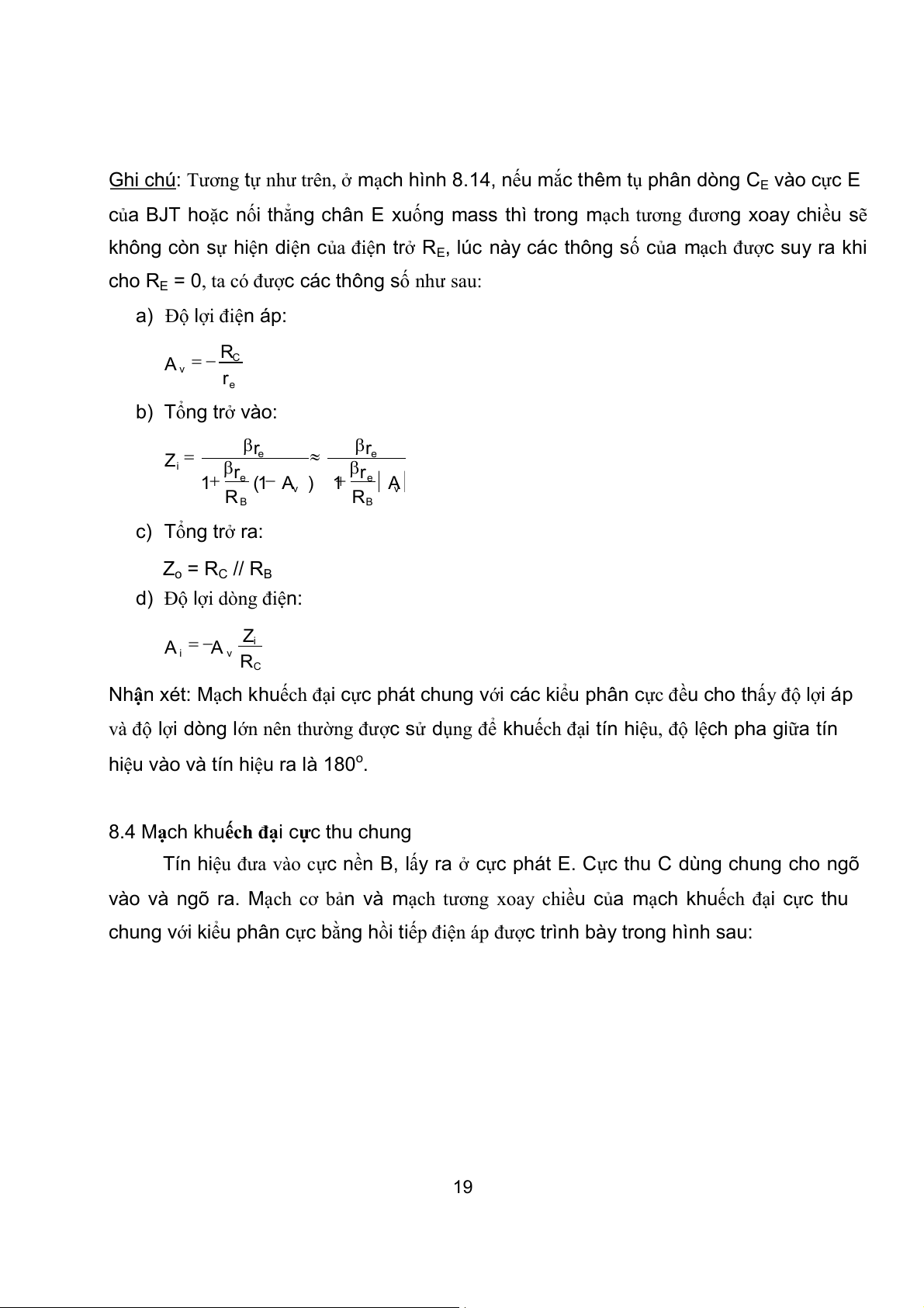 Các kết quả trên có thể suy ra từ các kết quả hình 8.9 khi cho RE = 0.