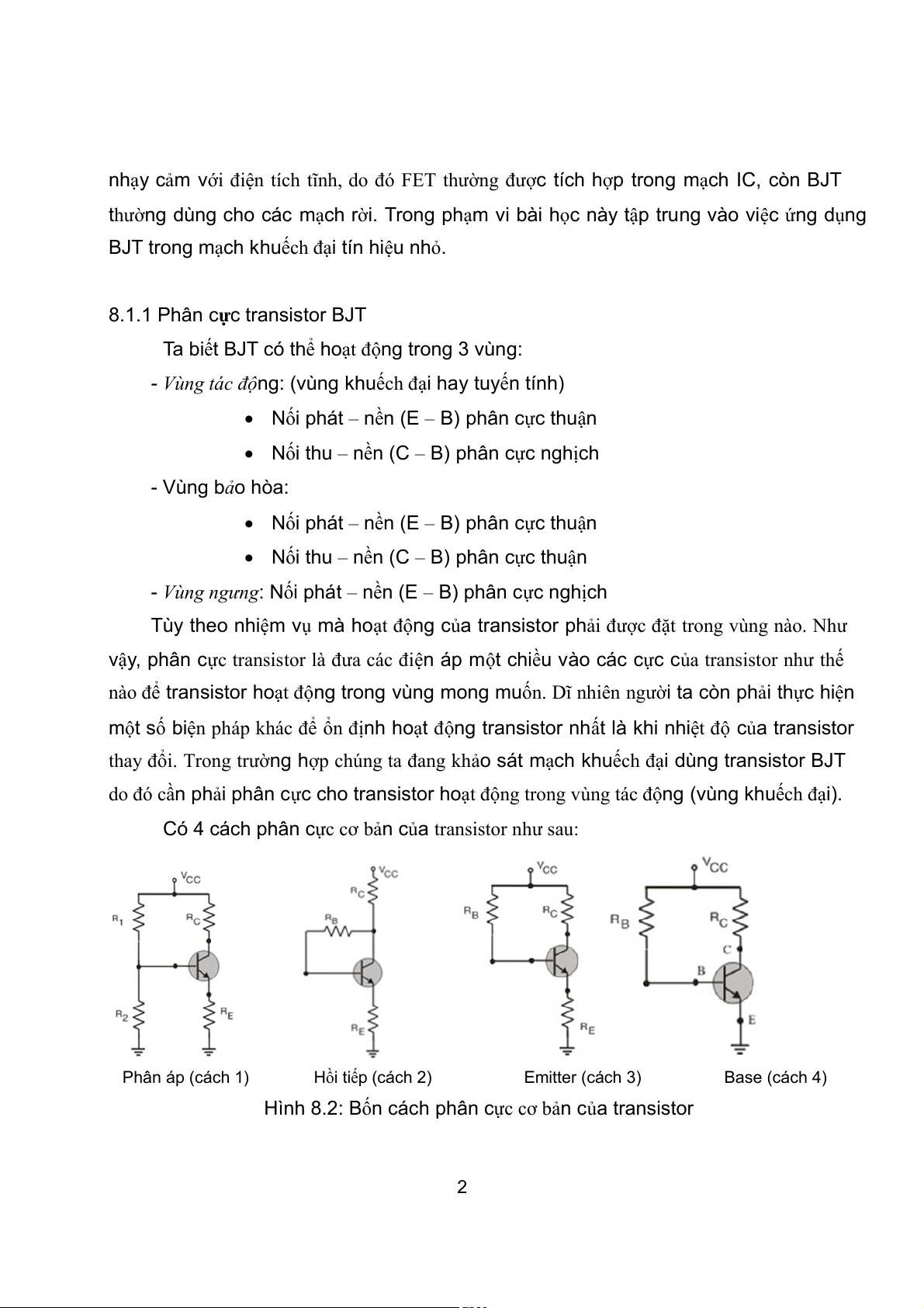 Hình 8.2: Bốn cách phân cực cơ bản của transistor 2 Trong đó