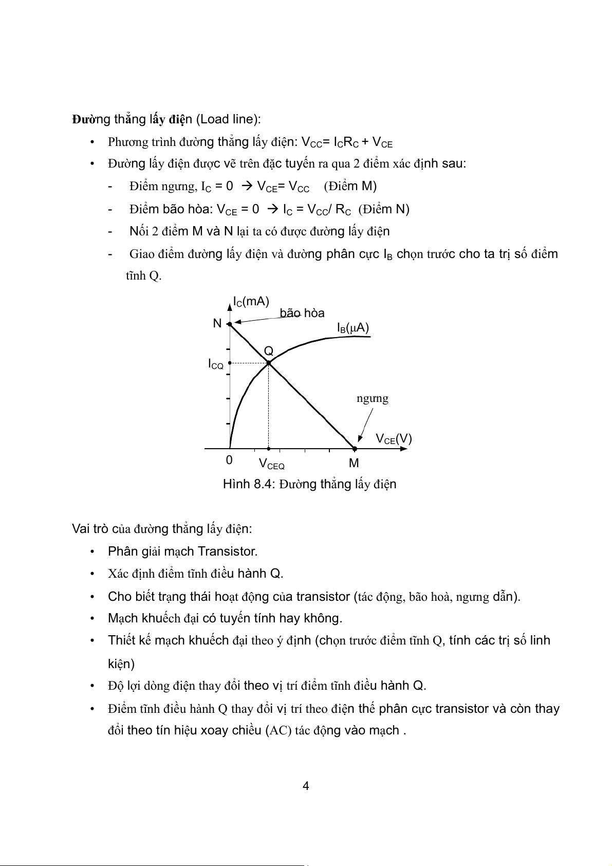 - Điểm ngưng, IC = 0 VCE= VCC (Điểm M)
