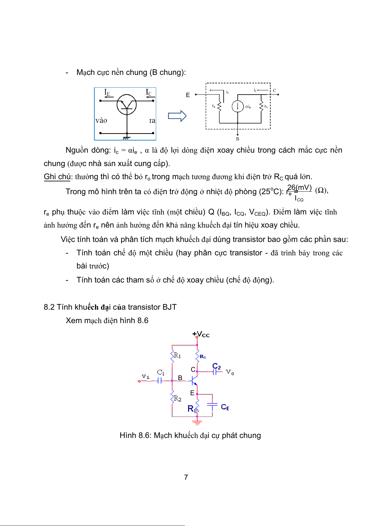 8.1.2 Mạch tương đương xoay chiều của transistor BJT