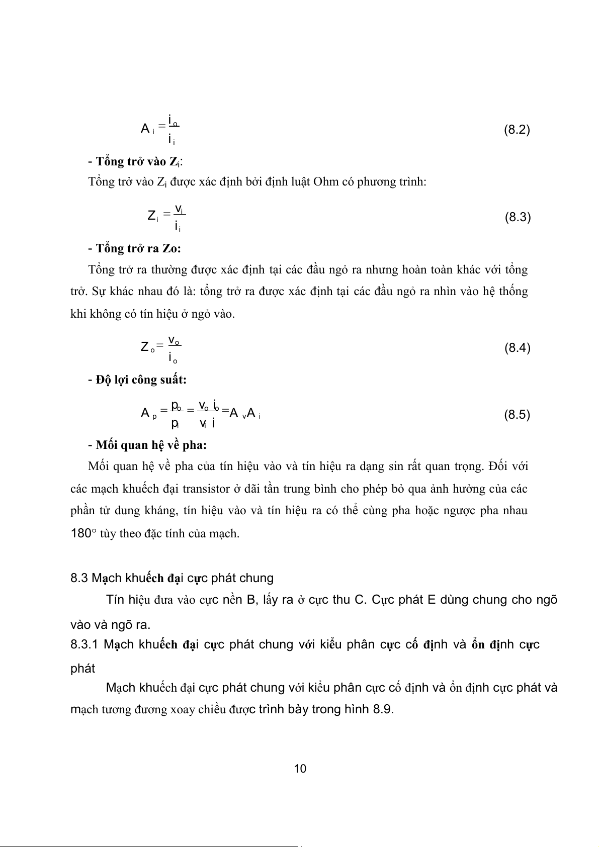 Độ lợi dòng điện được xác định bởi phương trình: 9 i o A i (8.2) i i