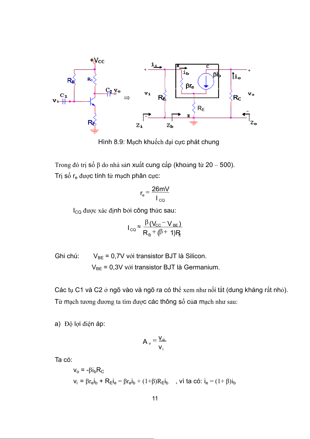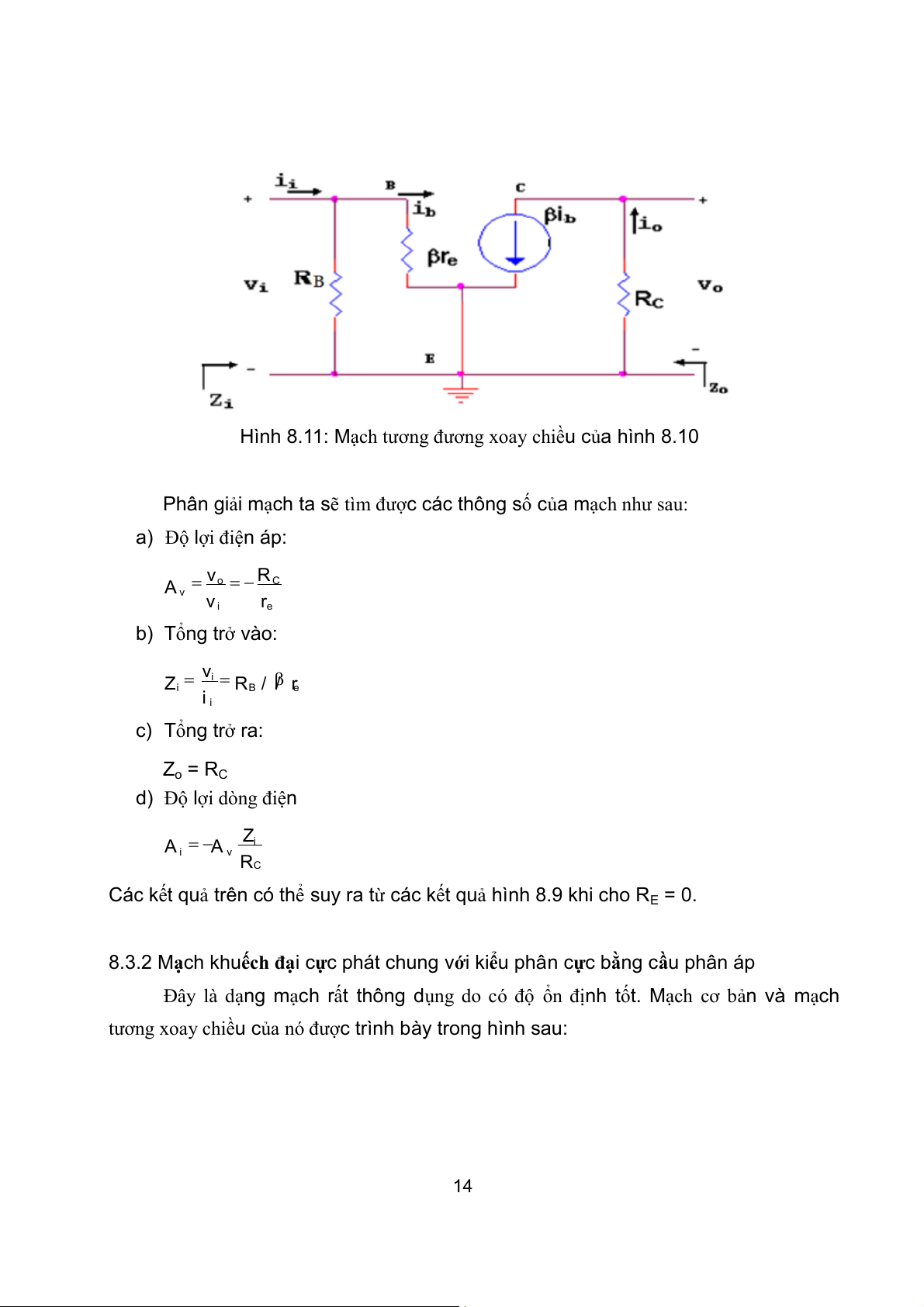 mạch tương đương xoay chiều được trình bày trong hình 8.9. 10 RE