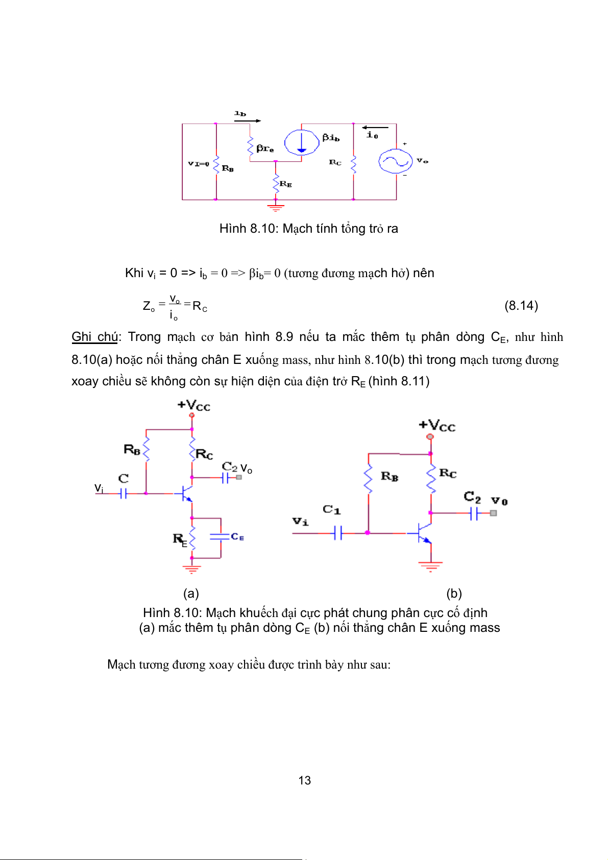 dòng CE, như hình 8.13(a) hoặc nối thẳng chân E xuống mass, như hình 8.13(b) thì trong