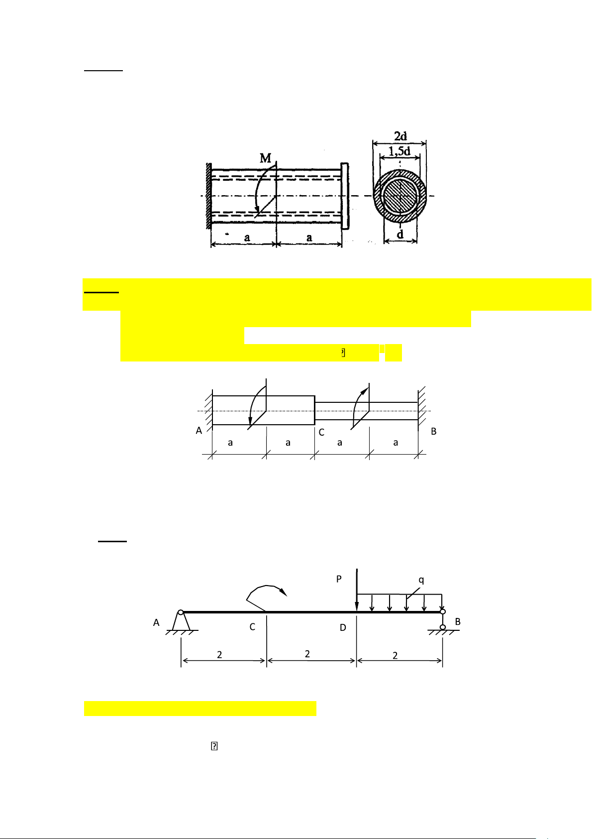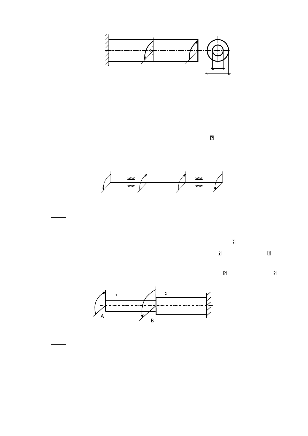 c. Tính góc xoắn giữa A và C biết G = 8.104 MN/m2, AB = BC =2m? lOMoAR cPSD| 59671932 M 2 M 1 d A B C D Hình 6