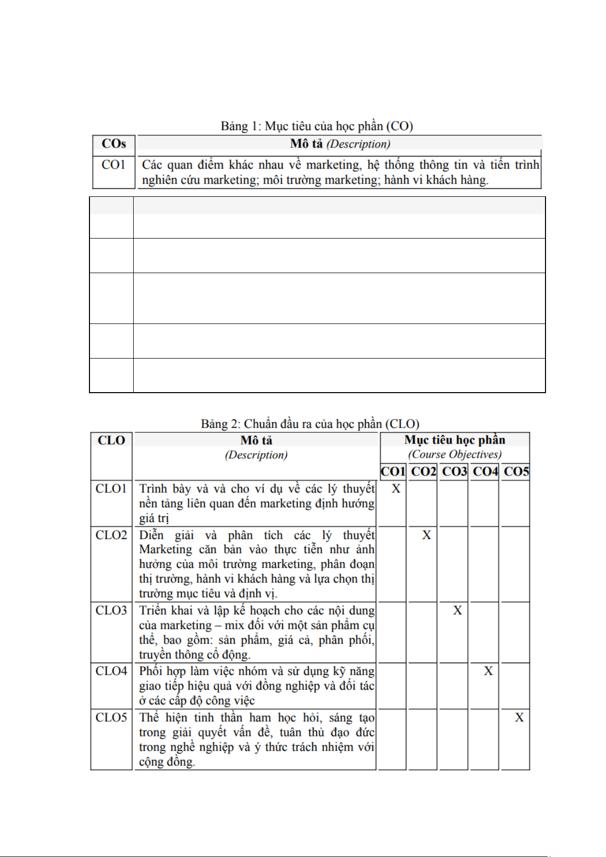 (Course Name in Vietnamese)    - Tên tiếng Anh  Marketing Principles