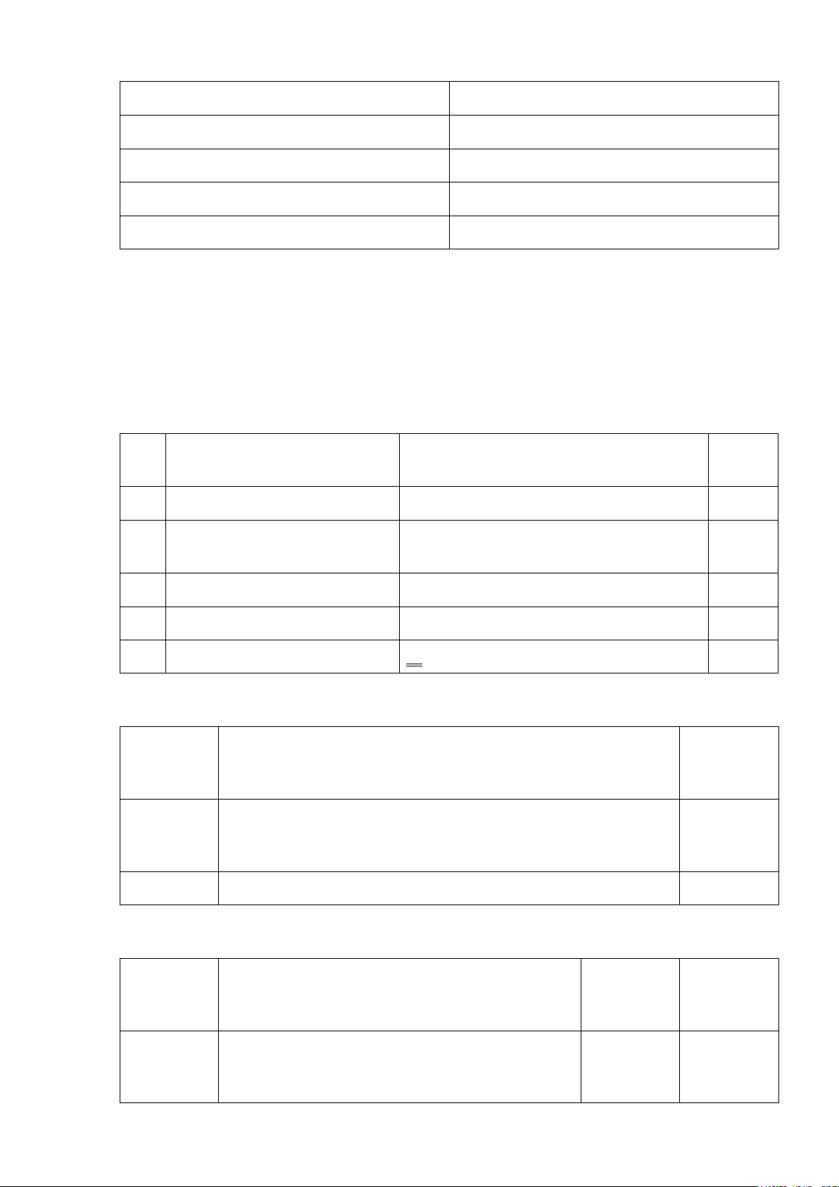 - Các thành phần đánh giá: Trọng Điểm tối Trọng số tính đa của Hình CĐR số đánh Thành phần điểm Bài Tiêu chí CĐR thức được giá theo đánh giá học đánh giá đánh giá trong đánh giá đánh giá CĐR phần lần (%) (%) đánh giá CC1. - Điểm - Rubric 5% Điểm 10 danh R1 danh CC.Đánh giá chuyên cần CC2. - Phát Phát biểu, - Rubric 5% 10 biểu thảo thảo luận 3 luận trên lớp - Bài tập lớn/ Tiểu B1. luận/Báo 15% 1.1 ĐGGK1 10 25% cáo (có thuyết ĐQT.Đánh trình) giá giữa kỳ - Trắc - Theo nghiệm B2. đáp án 15% (trên 1.1 ĐGGK2 10 25% và thang máy chấm tính) - Trắc 1.1 - Theo 5 50% KTHP. nghiệm TKTHP.Đánh đáp án 60% Đánh giá (trên giá cuối kỳ và thang cuối kỳ máy 2.1 5 100% chấm tính) Thời gian thi: 60