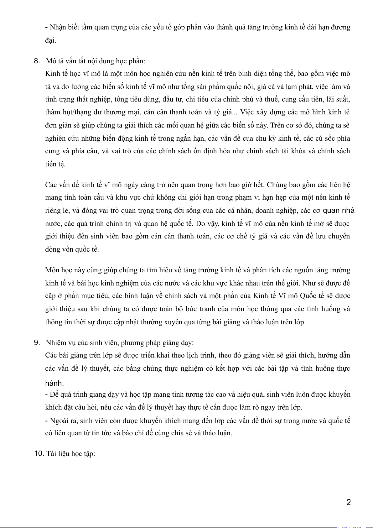 - Giúp sinh viên hiểu được các vấn đề và các hoạt động của nền kinh tế vĩ mô cũng như mối liên hệ