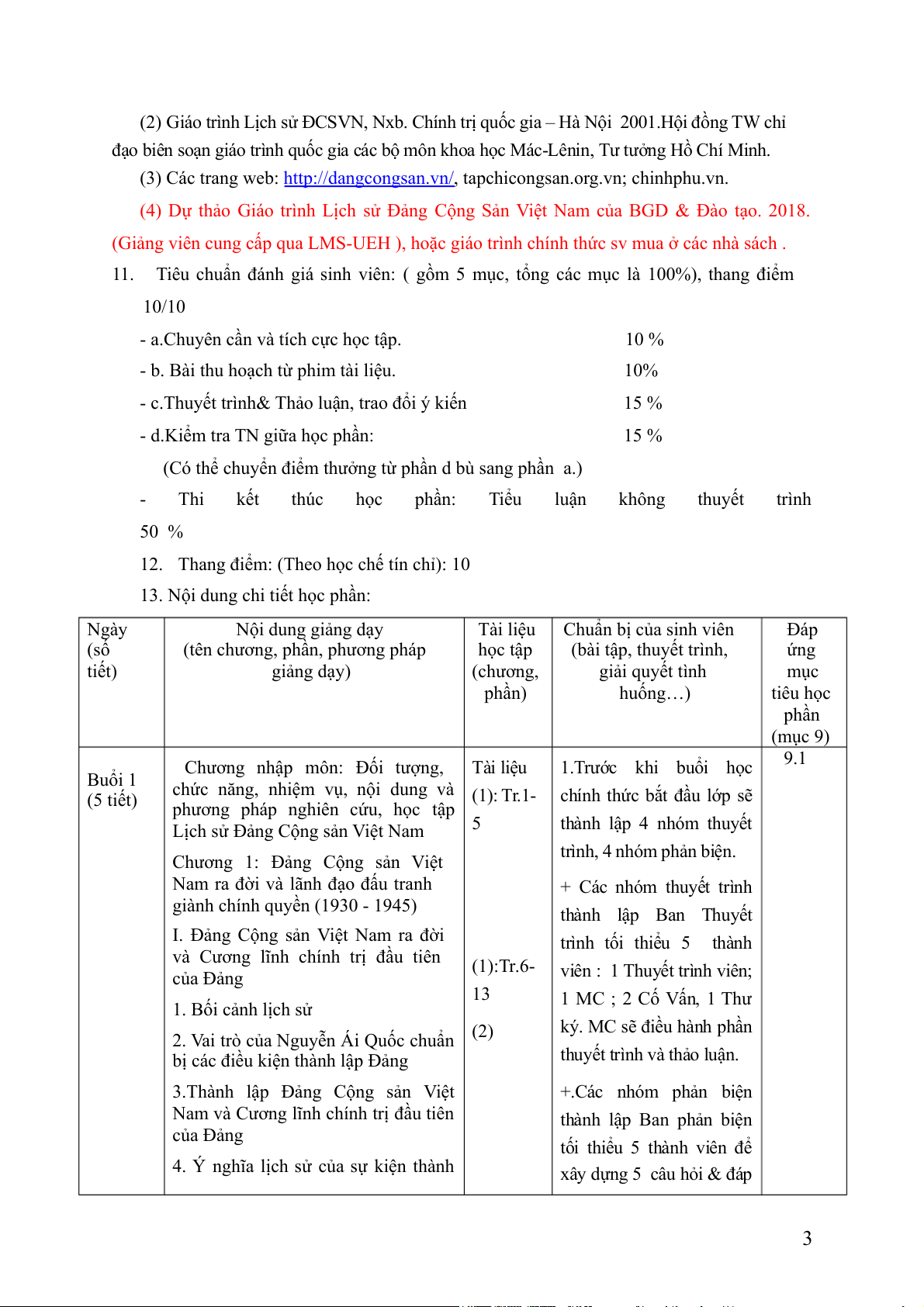 (tên chương, phần, phương pháp học tập (bài tập, thuyết trình, ứng tiết) giảng dạy) (chương, giải quyết tình mục phần) huống…) tiêu học phần (mục 9) Chương nhập môn: Đối tượng, Tài liệu