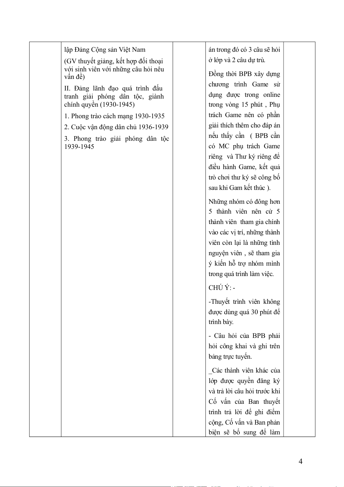 với sinh viên với những câu hỏi nêu vấn đề) Đồng thời BPB xây dựng chươn g trì nh Game sử II. Đảng