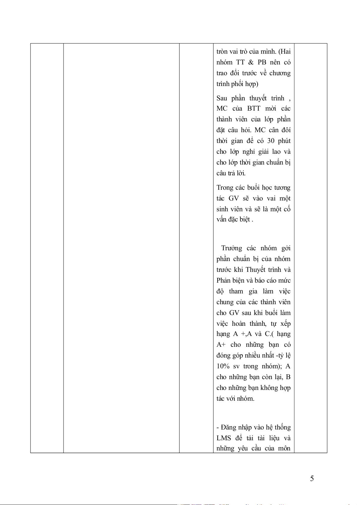 + Sinh viên làm việc nhóm, thảo luận tại GĐ: 8 tiết + Học LMS: 5 tiết