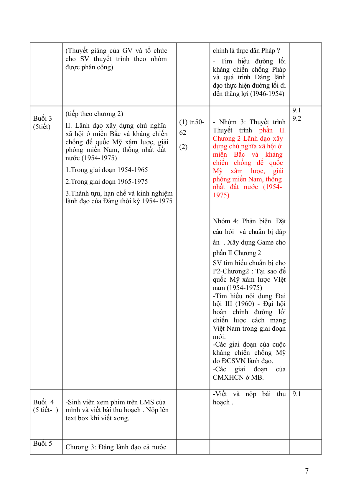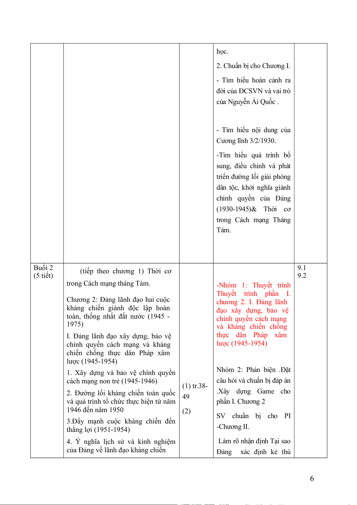 đến thắng lợi (1946-1954) (tiếp theo chương 2) 9.1 Buổi 3 (1) tr.50- - Nhóm 3: Thuyết trình 9.2 (5tiết)