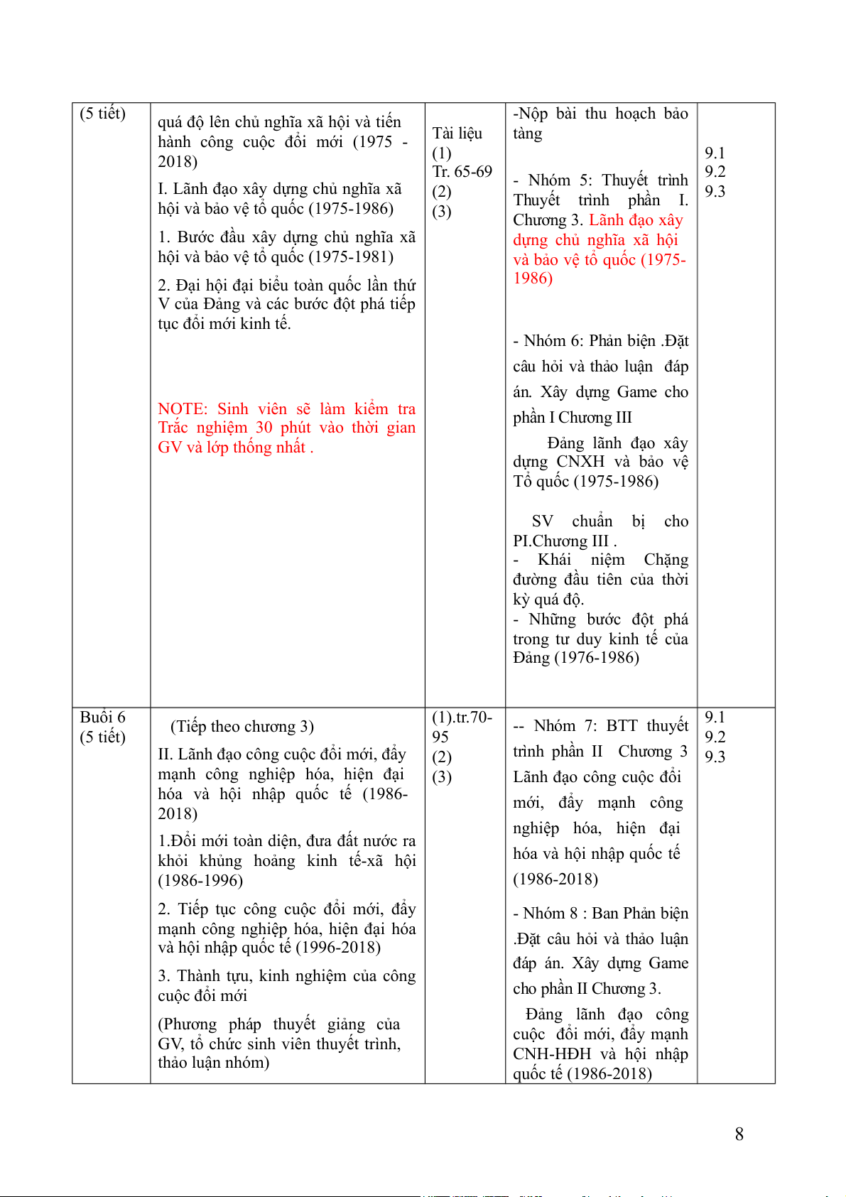GV, tổ chức sinh viên thuyết trình, thảo luận nhóm) CNH-HĐH và hội nhập quốc tế (1986-2018) 8 - SV chuẩn bị cho P2 Chương 3. -Tìm hiểu về quá trình