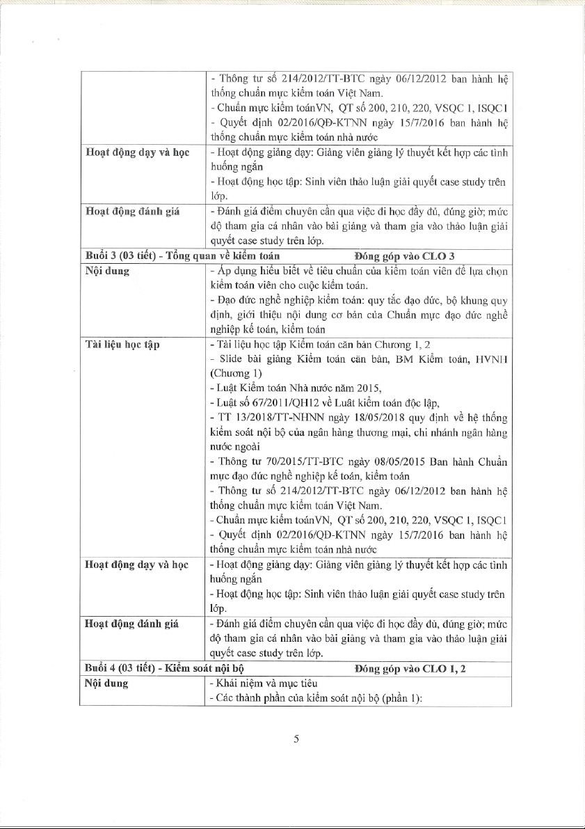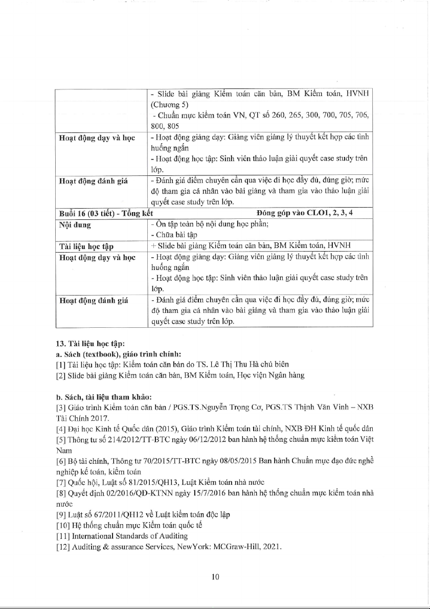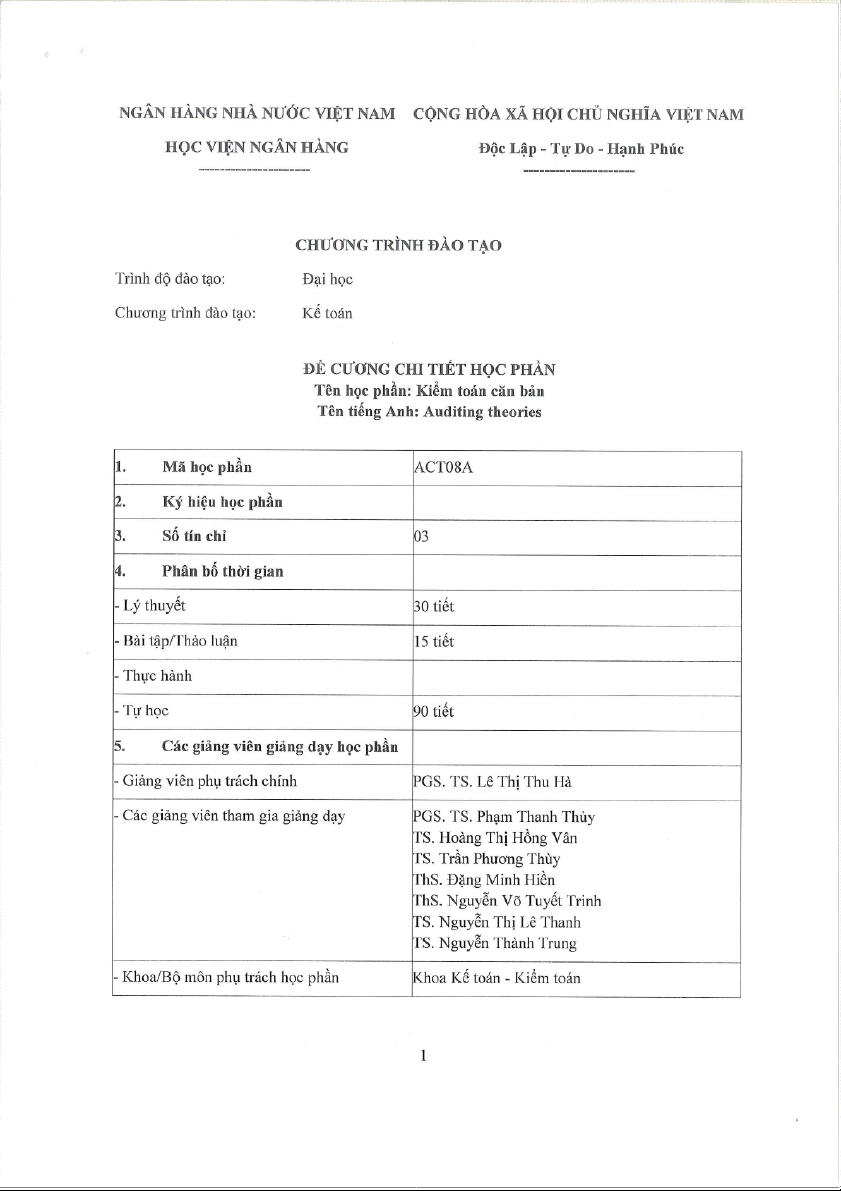 Đề cương chi tiết học phần môn Kiểm toán | Học viện Ngân hàng