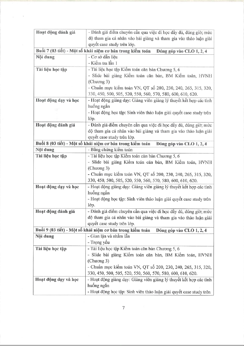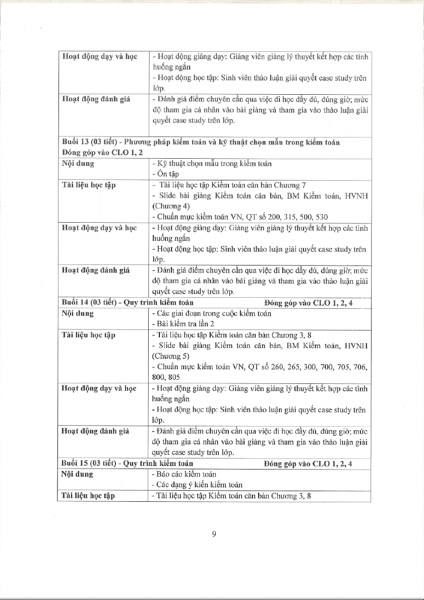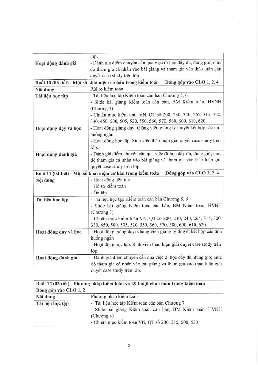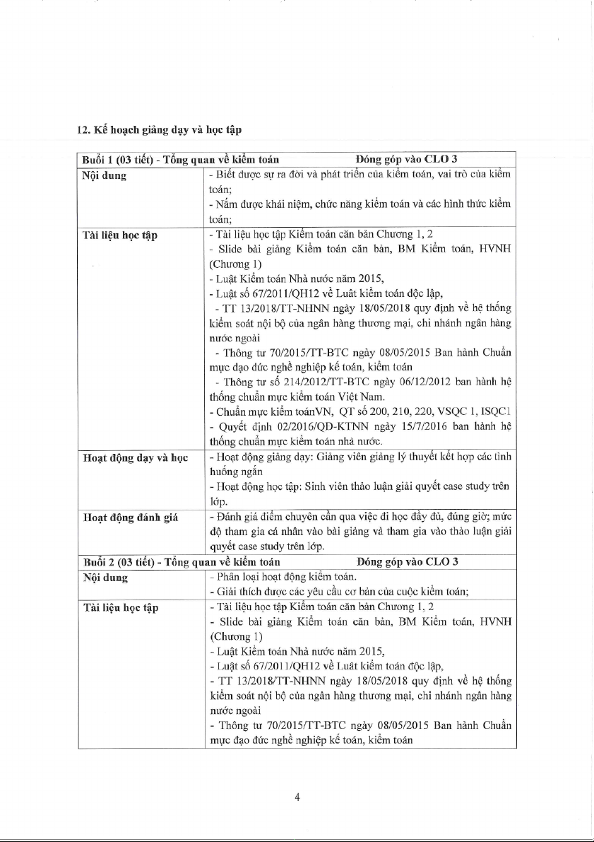 Đề cương chi tiết học phần môn Kiểm toán | Học viện Ngân hàng