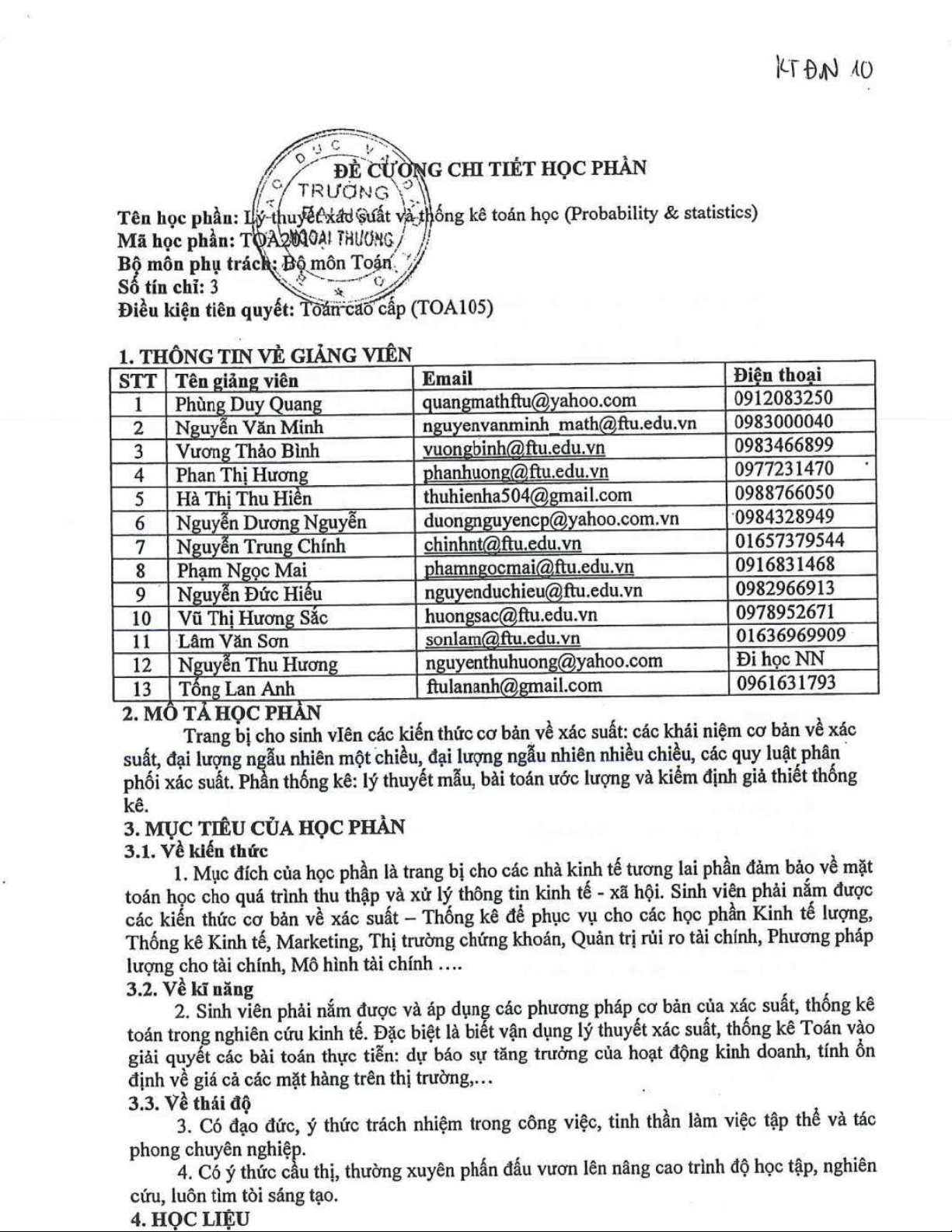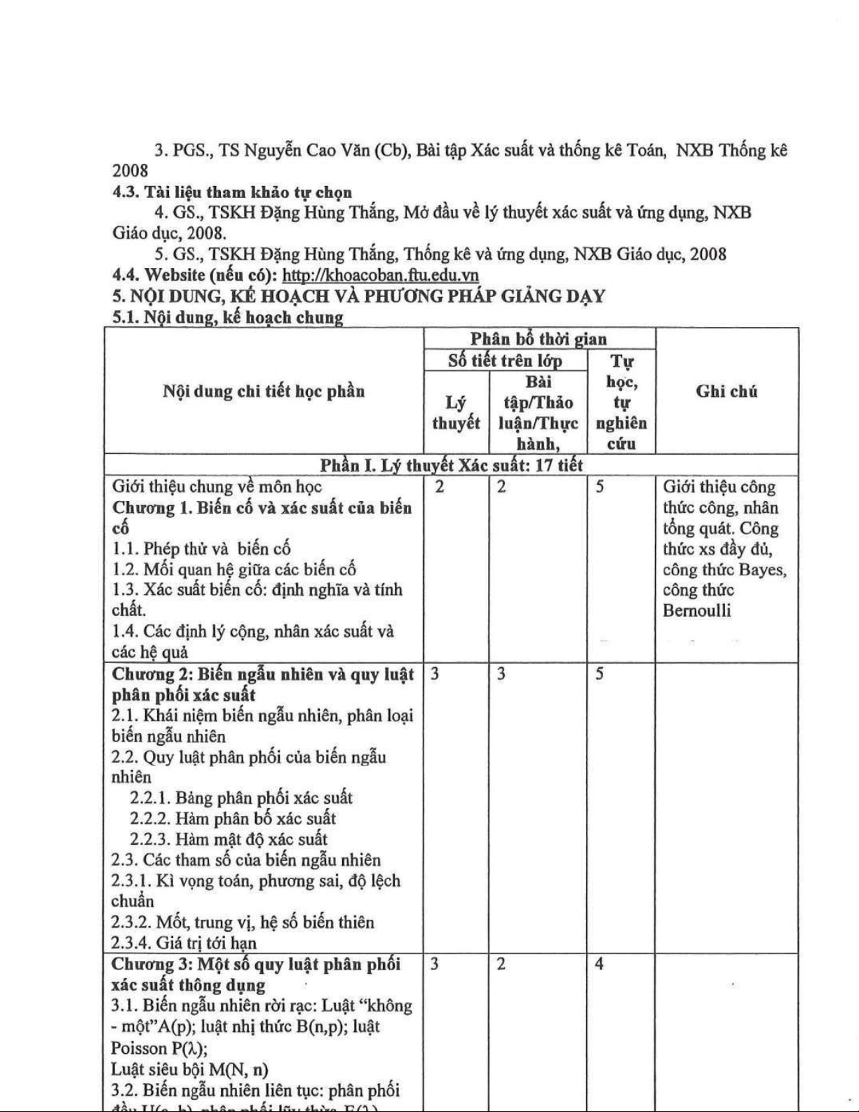 Đề cương chi tiết học phần môn Xác suất thống kê| Trường Đại học Ngoại Thương