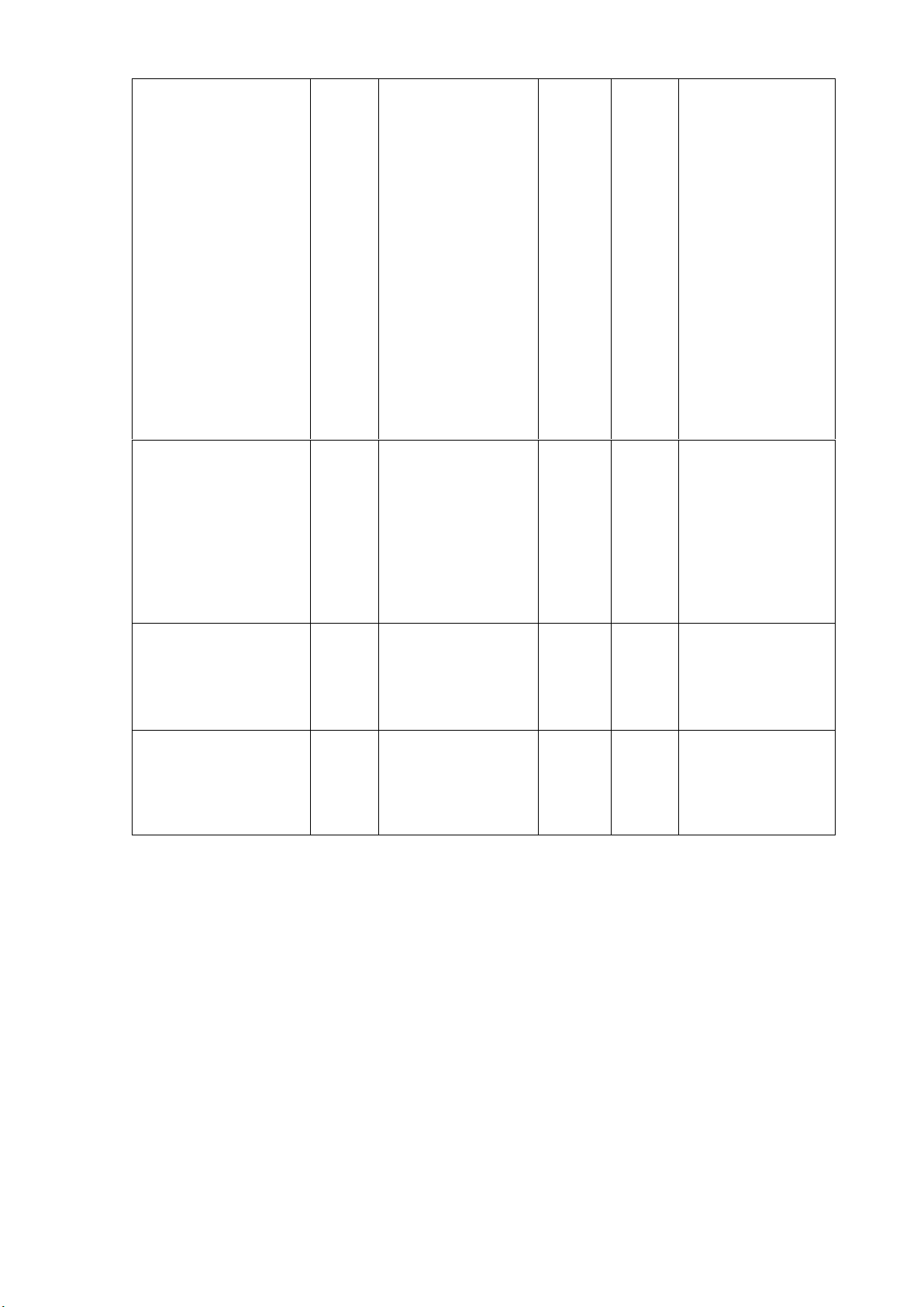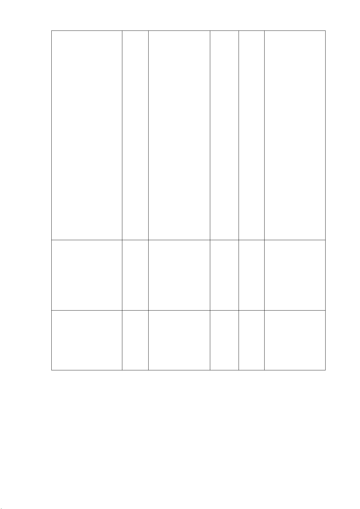 đáp ứng ˂ đạt 50 64% đạt 65 79% bài, tham gia các hoạt 50% nhiệm nhiệm vụ nhiệm vụ các hoạt động động trong vụ học tập học tập học tập trong giờ học. giờ học được giao. được giao. được giao. Thời gian 4,0 0 đến < 2,5 2,5 đến < 3,3 đến < 4,0 đến 5,0 tham dự 3,3 4,0 lOMoARcPSD| 60380256 buổi học bắt Dự < 80% Dự 80% - Dự 90% = Dự 95% - buộc
