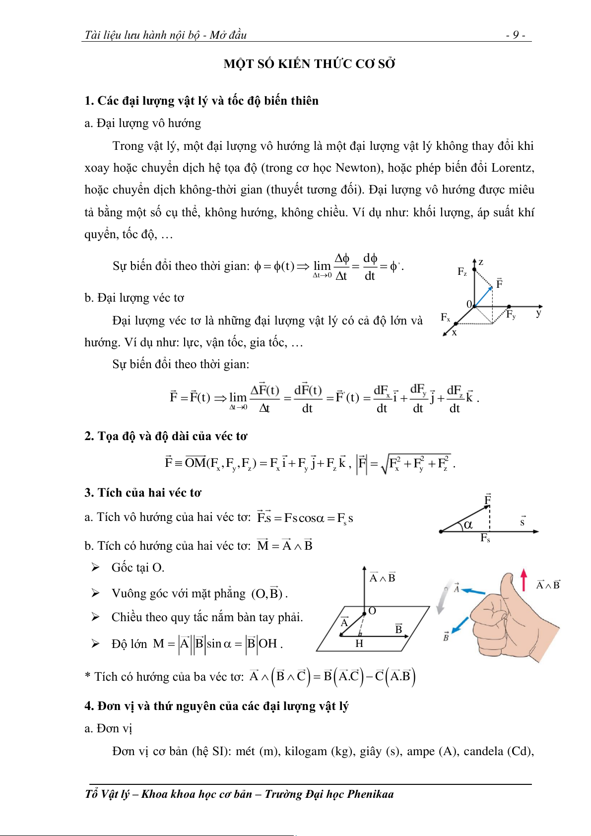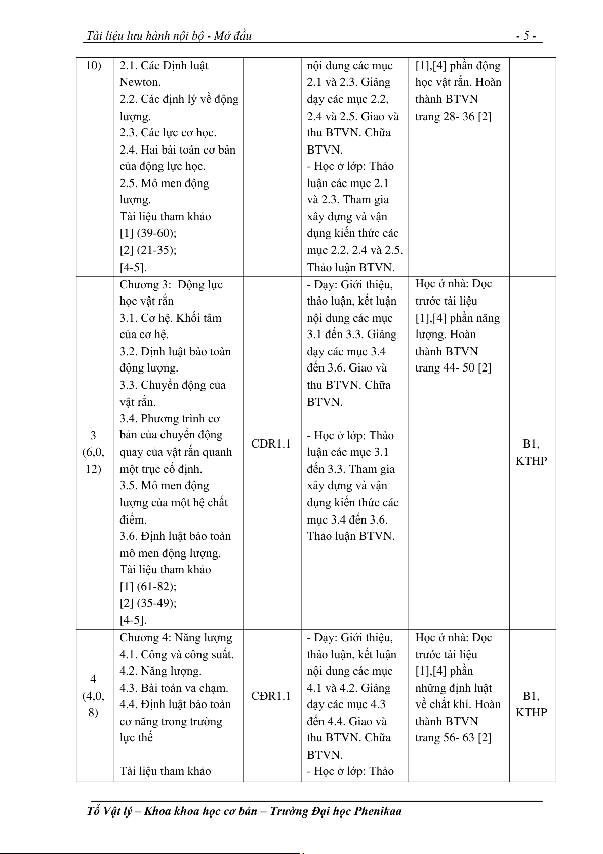 Tài liệu lưu hành nội bộ - Mở đầu - 5 - 10) 2.1. Các Định luật nội dung các mục [1],[4] phần động Newton. 2.1 và 2.3. Giảng học vật rắn. Hoàn