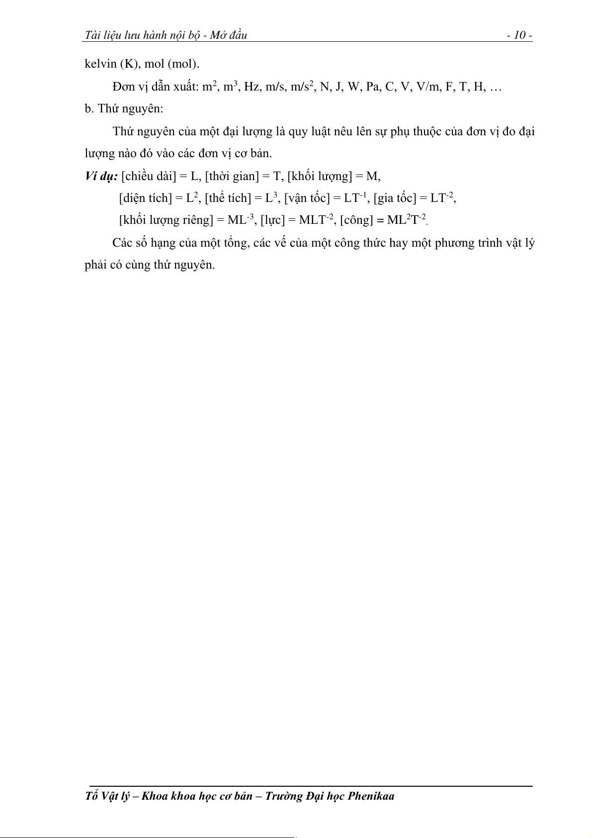 Tài liệu lưu hành nội bộ - Mở đầu - 10 - kelvin (K), mol (mol).
