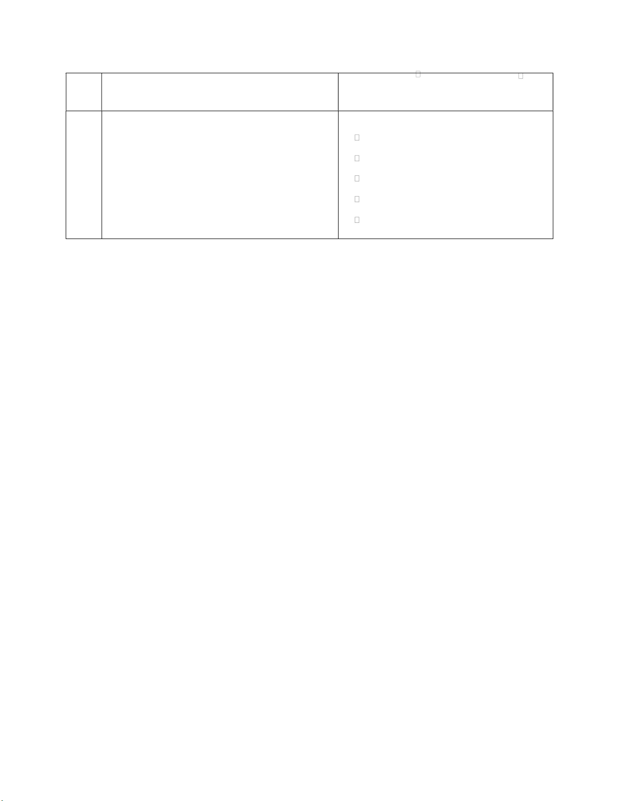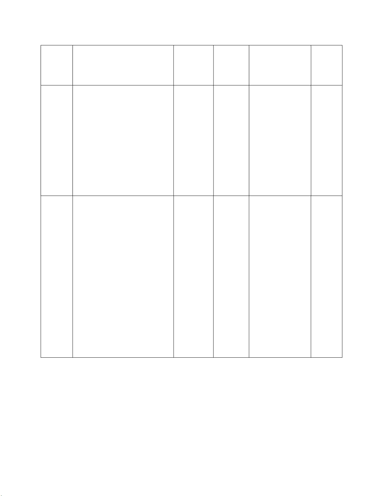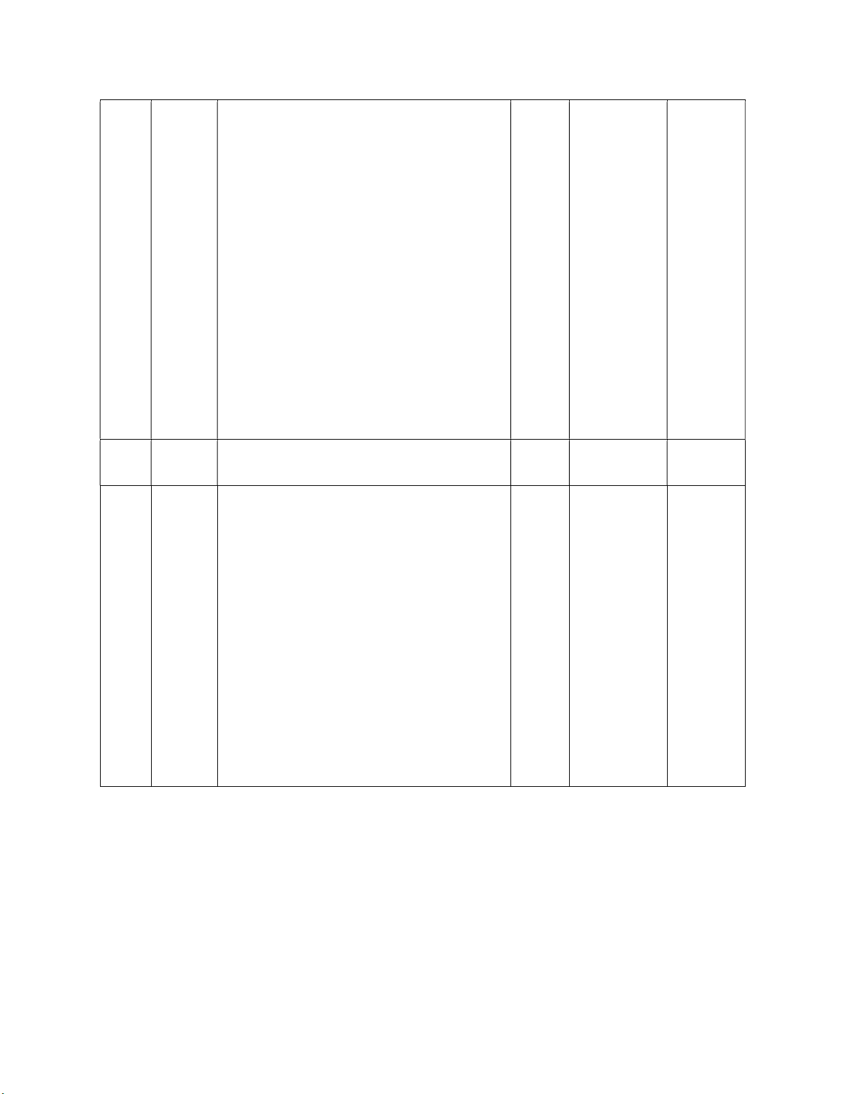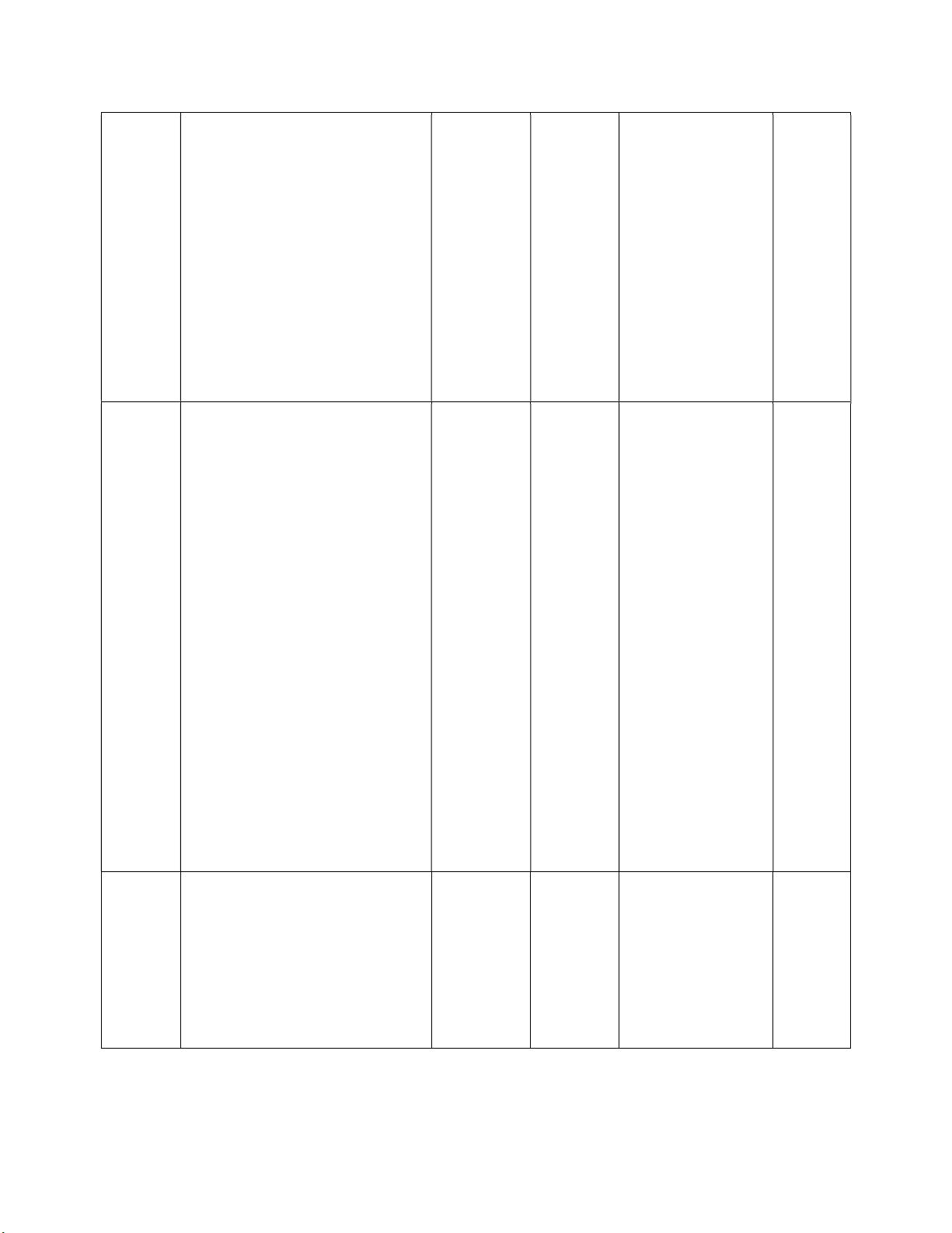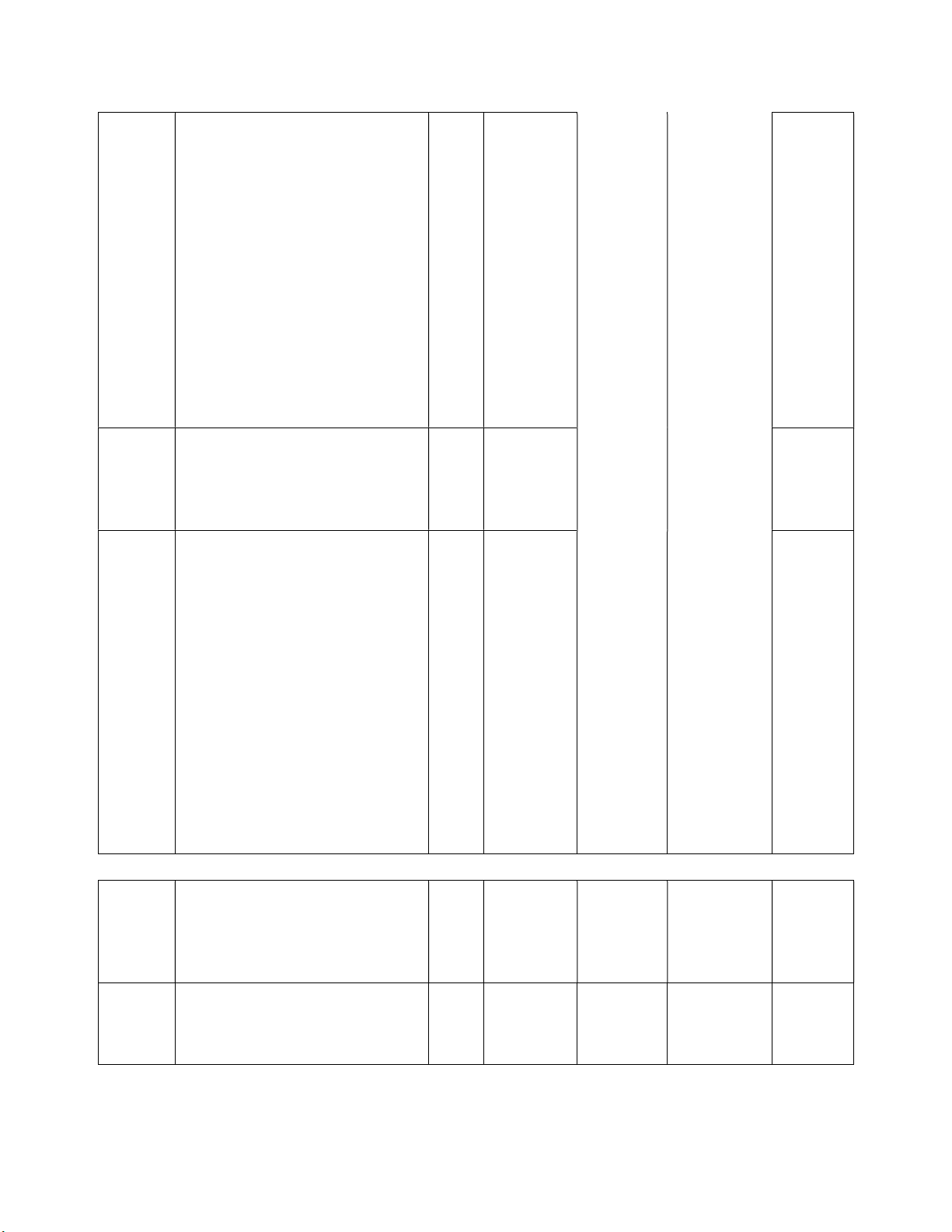 đánh giá giữa kỳ, đánh giá cuối kỳ. lOMoAR cPSD| 58886076 Chuẩn đầu ra Rubric Hướng dẫn Thành Trọng học Hình thức Trọng phương phần đánh số số con (đánh phần có pháp đánh giá đánh giá dấu X (%) (%) liên nếu có) quan giá (1) (2) (3) (4) (5) (6) (7) Điểm danh, A1. Đánh A1.1. Chuyên kiểm tra bài giá quá 20% trình cần cũ, bài tập trên lớp CLO1, A2. Đánh Kiểm tra tự CLO2, giá giữa Tự luận 20% luận 50 phút CLO3, kỳ trên lớp CLO4, CLO1, Kiểm tra tự A3. Đánh CLO2, luận 60 phút giá cuối Tự luận 60% CLO3, trong phòng kỳ CLO4, thi.