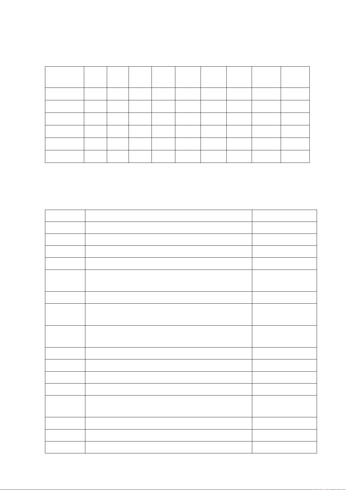 Hình thức đánh giá | CLO1 | CLO2 | CLO3 | CLO4 | CLO5 | CLO6 |