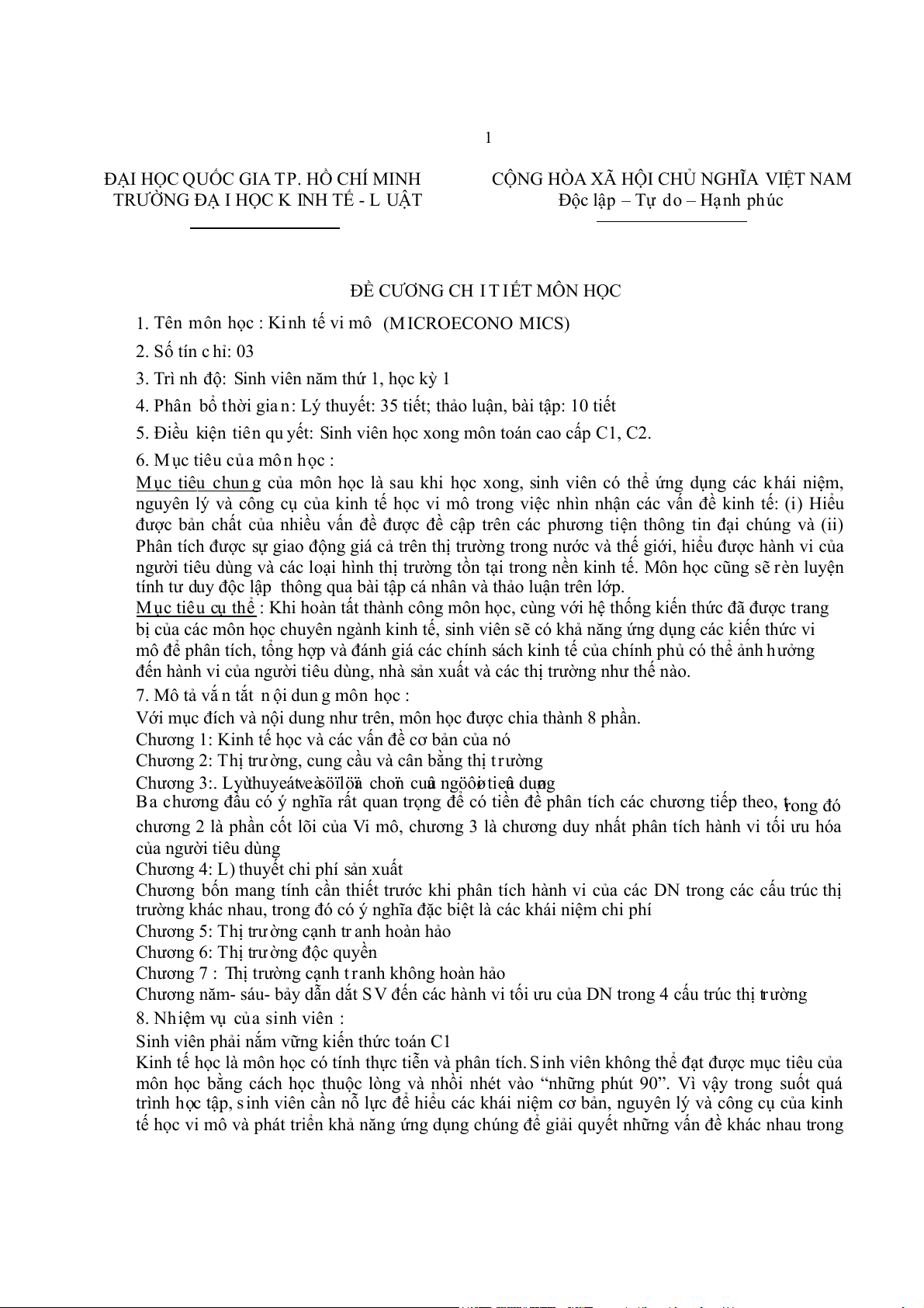 1. Tên môn học : Ki nh tế vi mô (M ICROECONO MICS) 2. Số tín c hỉ: 03