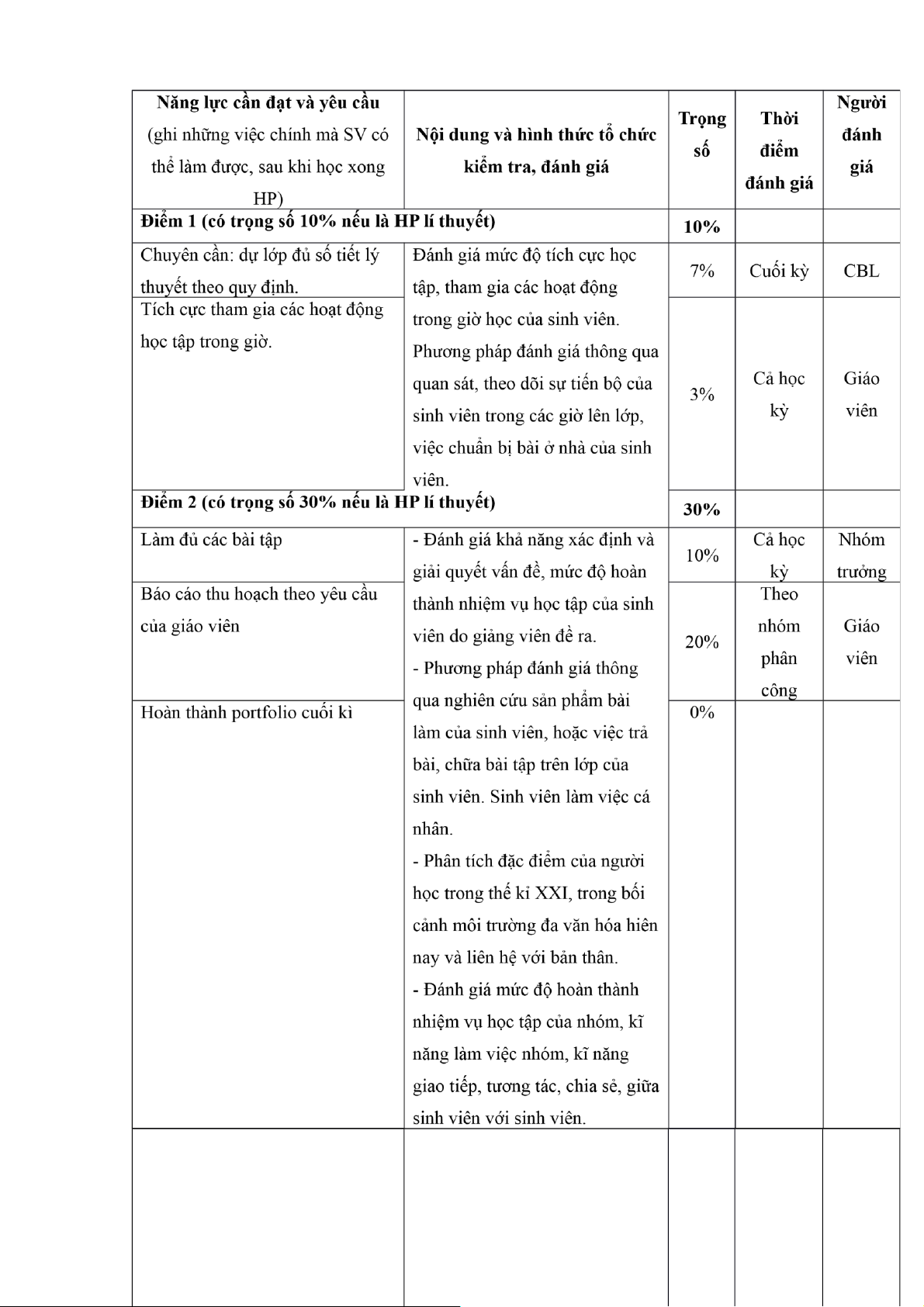 - Nếu là HP lí thuyết, lí thuyết kết hợp vơꄁi thực hành thì phải có 3 đầu điểm, có thể