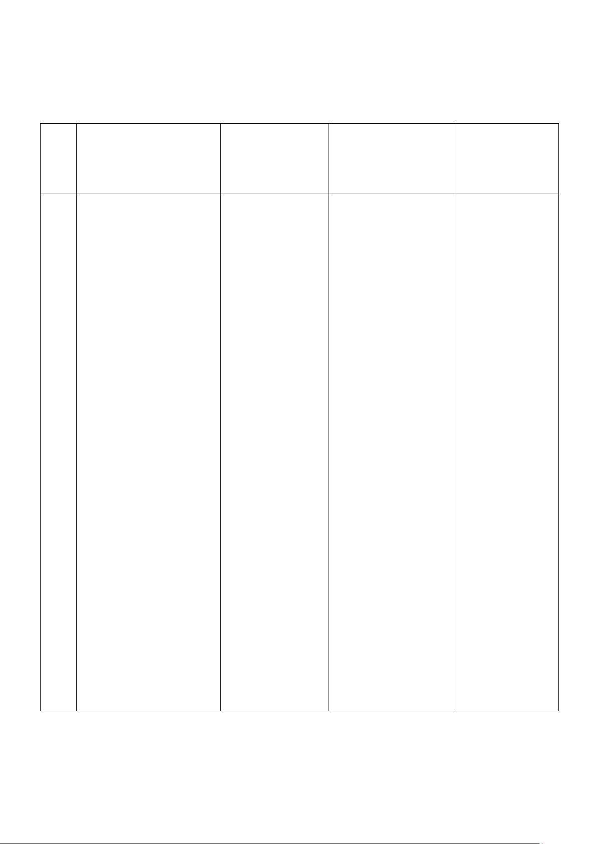 BẢNG PHÂN CÔNG CÔNG VIỆC VÀ ĐÁNH GIÁ STT TÊN THÀNH VIÊN MÃ SINH VIÊN THỰC HIỆN ĐÁNH GIÁ CỦA NHIỆM VỤ NHÓM (A+, A, B, C) 1 Hà Thị Thu Trang 63DVH14068 Phần mở đầu - Làm mục 3. Đối tượng nghiên cứu, khách thể và phạm vi nghiên cứu - Làm mục 6. Kết cấu của đề tài Phần nội dung: - Làm mục 2.1. Thực trạng lối sống của sinh viên trường Đại học Văn Hóa hiện nay (mục 2.1.1; mục 2.1.2 và mục 2.1.5 chương 2) - Làm mục 2.2. Đánh giá về lối sống của sinh viên trường Đại học Văn Hóa hiện nay (mục 2.2.2 Chương 2) - Làm mục 2.3 Nguyên nhân gây ra những lối sống tiêu cực (chương lOMoAR cPSD| 60860503 2)