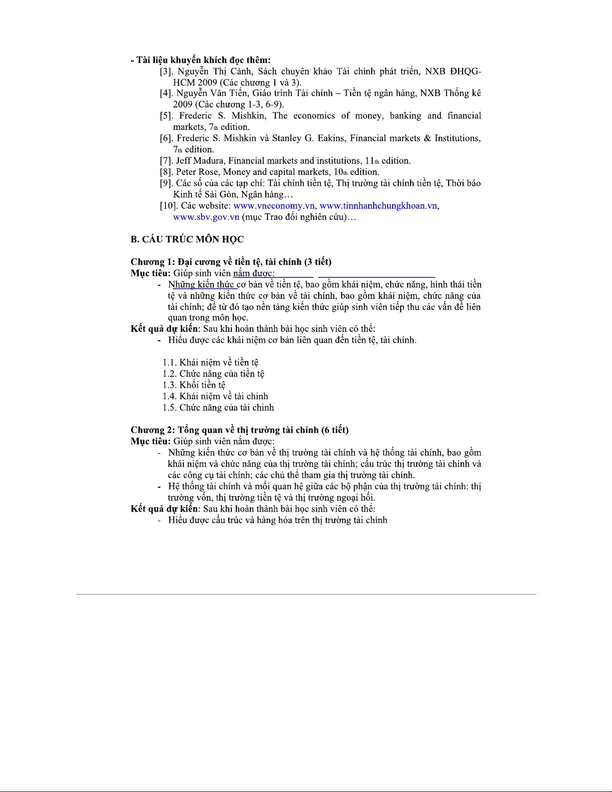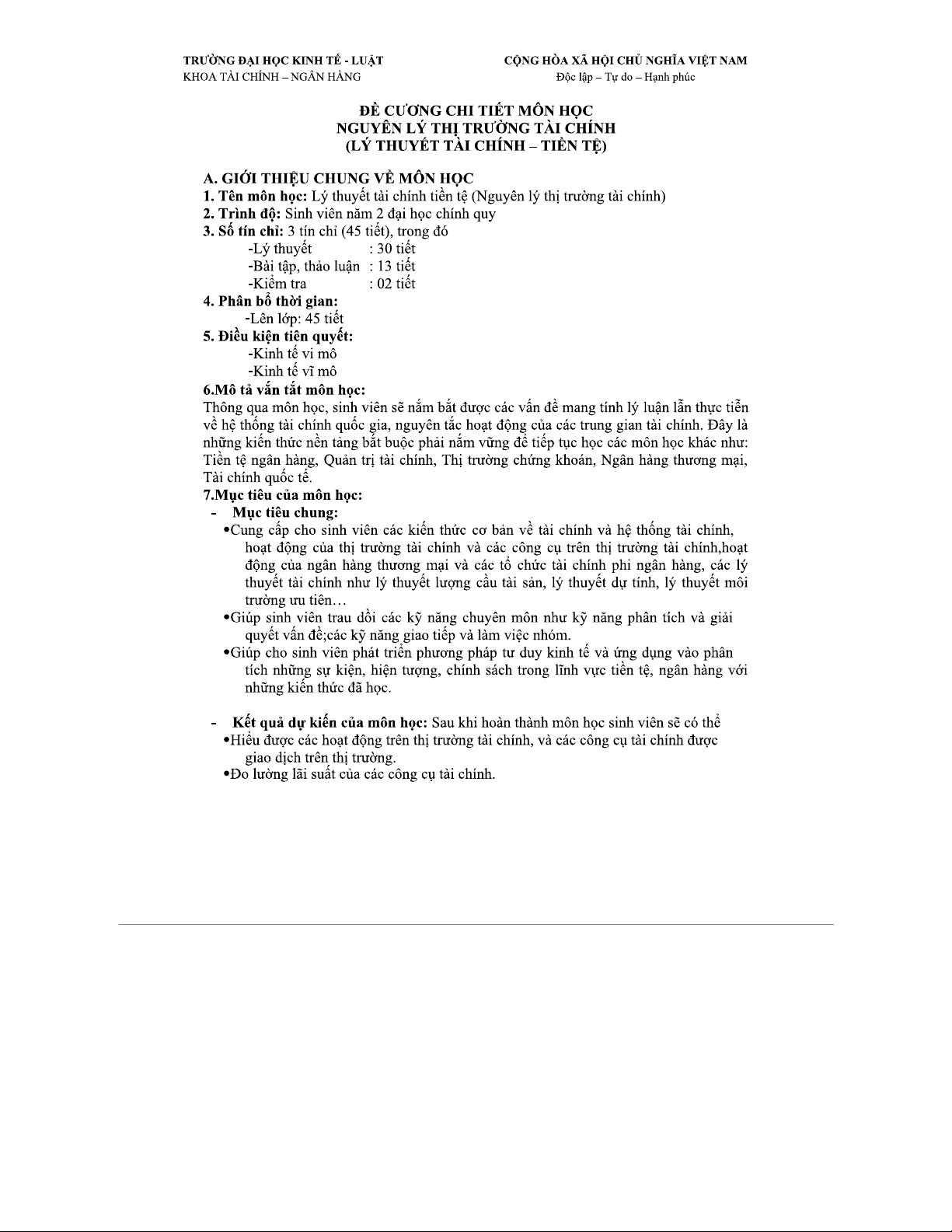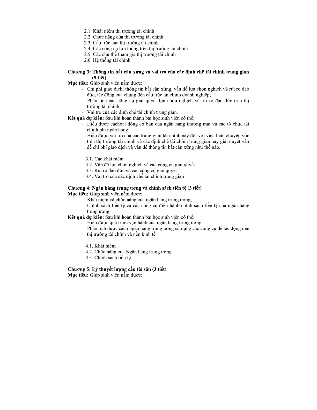Đề cương chi tiết Nguyên lý Thị trường Tài chính - TCN 03 09