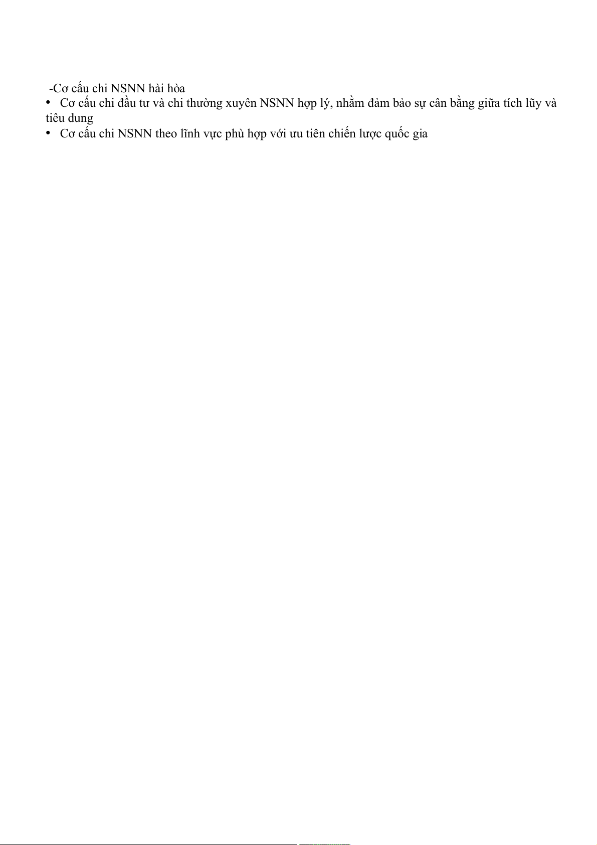 + sự hhòa, hlý trong ccấu thu, chi giữa các khoản thu, chi; các lv, các ngành; các cấp cquyền, giữa các thế hệ.