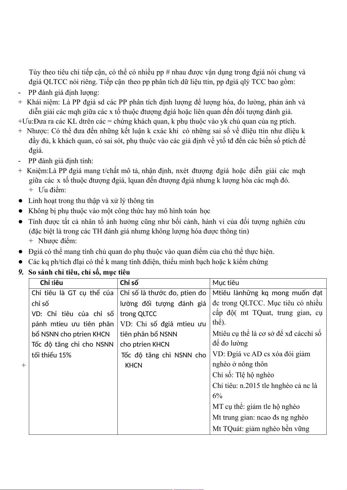 9. So sánh chỉ tiêu, chỉ số, mục tiêu Chỉ tiêu Chỉ số Mục tiêu