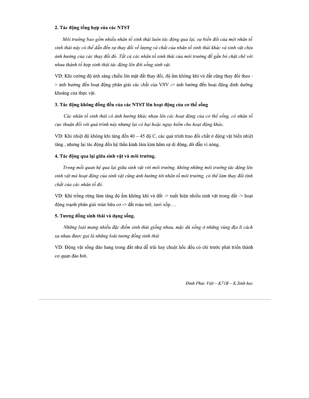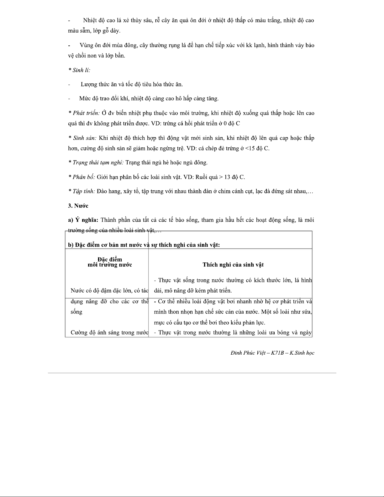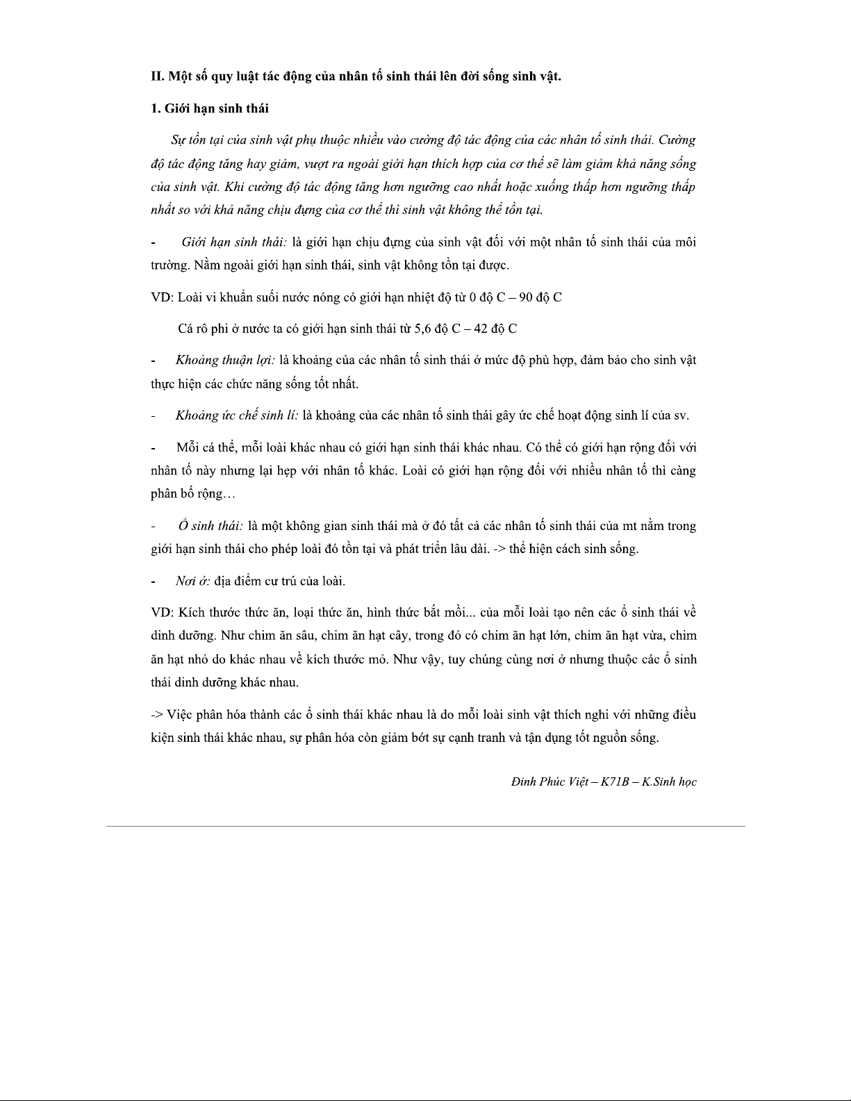 Đề cương Chi tiết về Nhân tố Sinh thái Học - Môn SINH THÁI HỌC