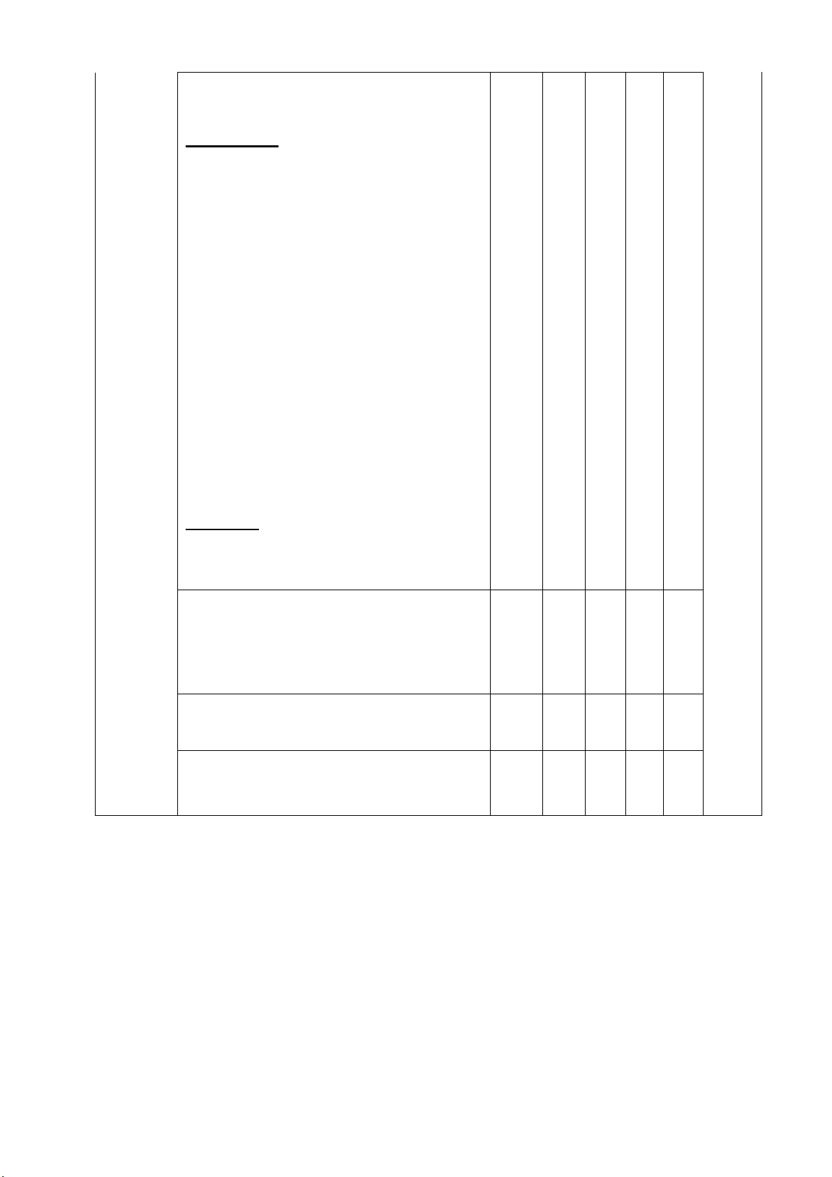 thông tin cần trình hiện gần đầy thể hiện gần bày đủ thông tin cần trình bày một phần thông tin cần trình bày Kỹ năng 20% Trình bày rõ ràng, Trình bày rõ Trình bày kém trình bày mạch lạc. Trả lời ràng, mạch Trình bày hoàn toàn. Trả không rõ Trả lời câu đúng trọng tâm, lạc. Trả lời lời lạc đề ràng, thông hỏi phản có dẫn chứng cụ đúng đúng tin lộn xộn. biện đúng thể trọng tâm, thiếu dẫn Trả lời đúng trọng tâm chứng một phần, thiếu dẫn chứng cụ thể Đầy đủ nội 30% Nội dung đầy đủ, Nội dung Nội dung hoàn dung đánh