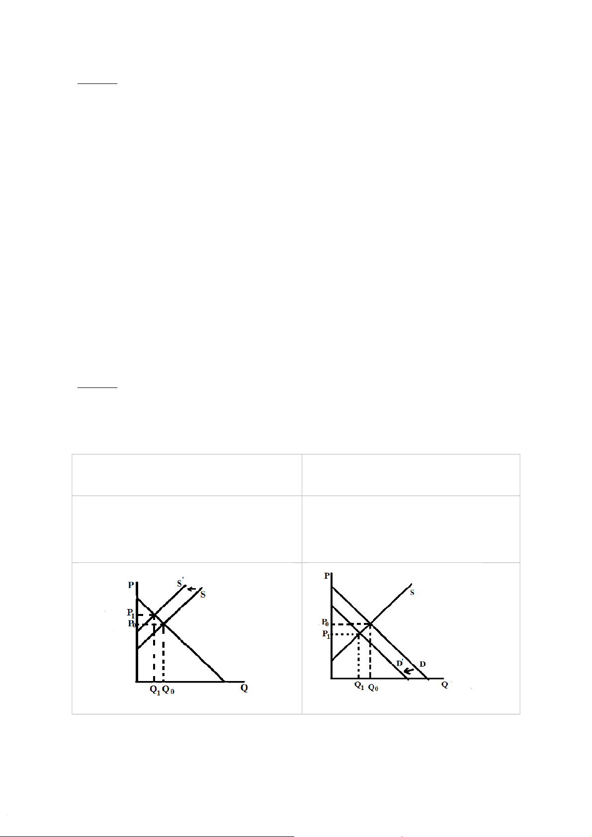 tăng, Q giảm, đường cầu không thay đổi trái, P giảm, Q giảm, đường cung không thay đổi