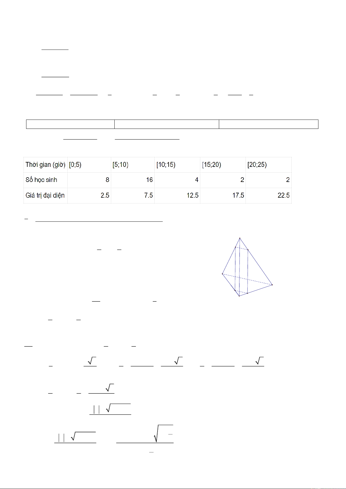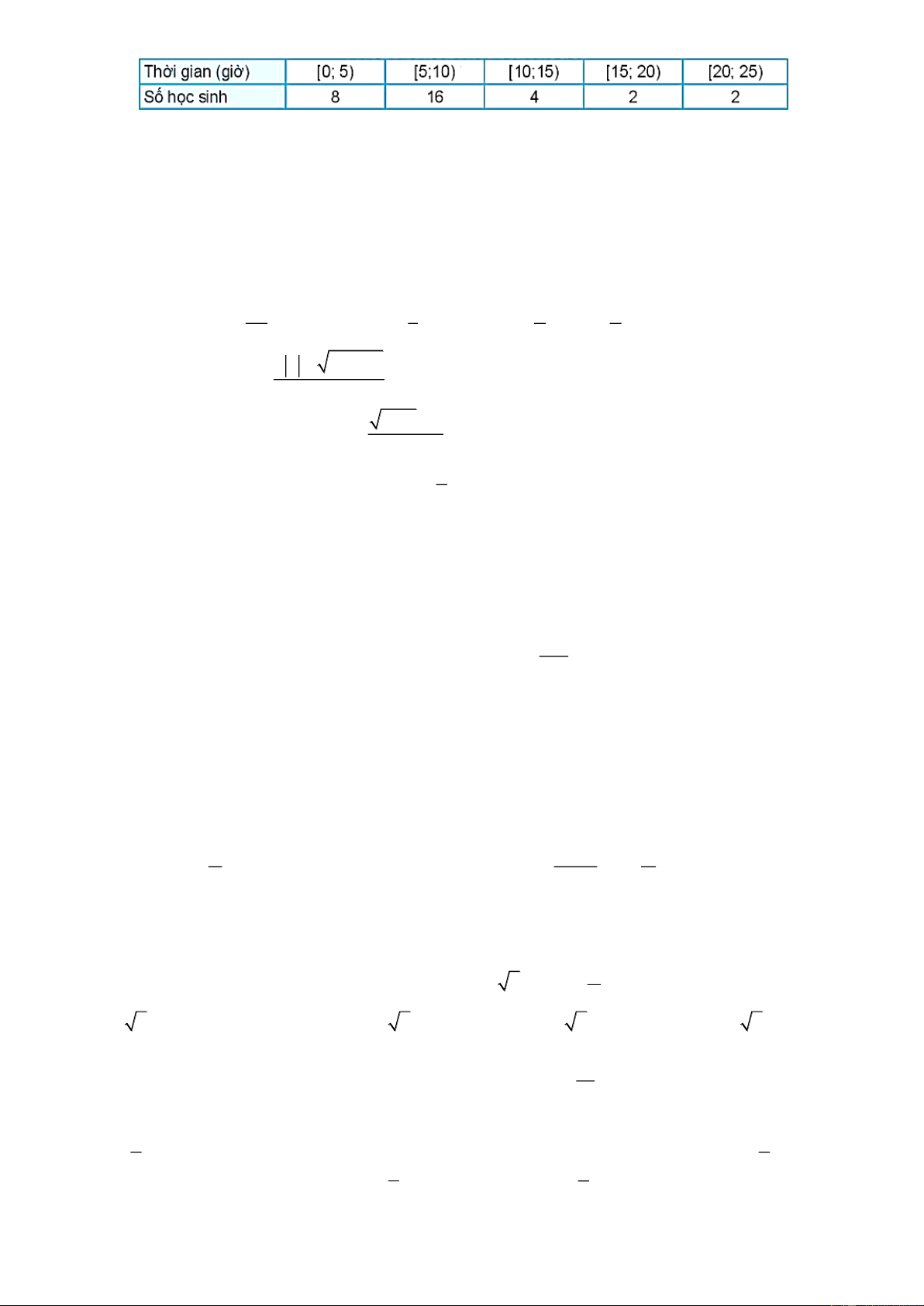 Câu 2. Tìm hiểu thời gian sử dụng internet trong tuần trước của một số học sinh thu được kết quả sau: Trang 4/14