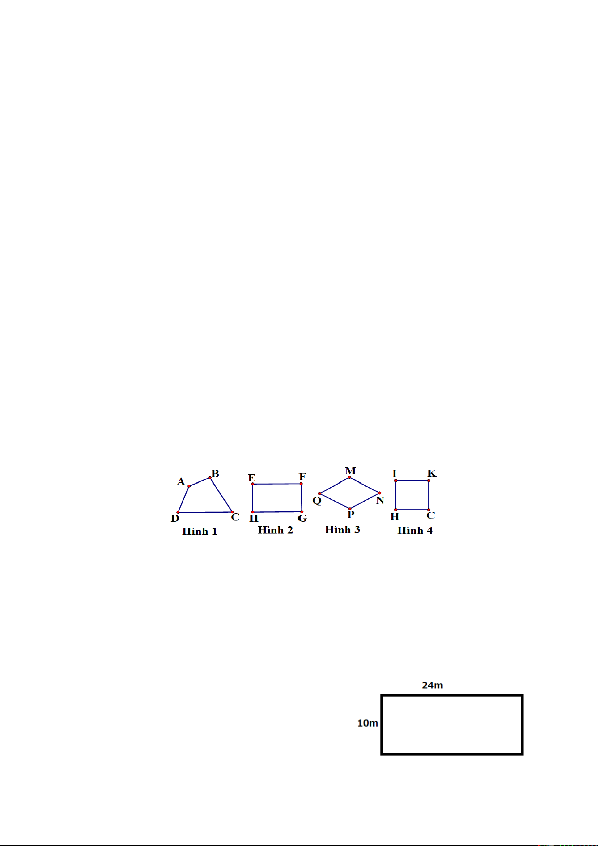 Câu 9. Trong các hình sau đây, hình nào là hình chữ nhật? A. Hình 1 B. Hình 2 C. Hình 3 D. Hình 4