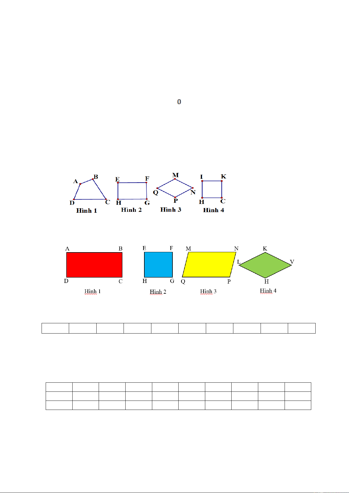 Câu 10. Trong các hình dưới đây, hình nào là hình vuông? A. Hình 1 B. Hình 2 C. Hình 3 D. Hình 4