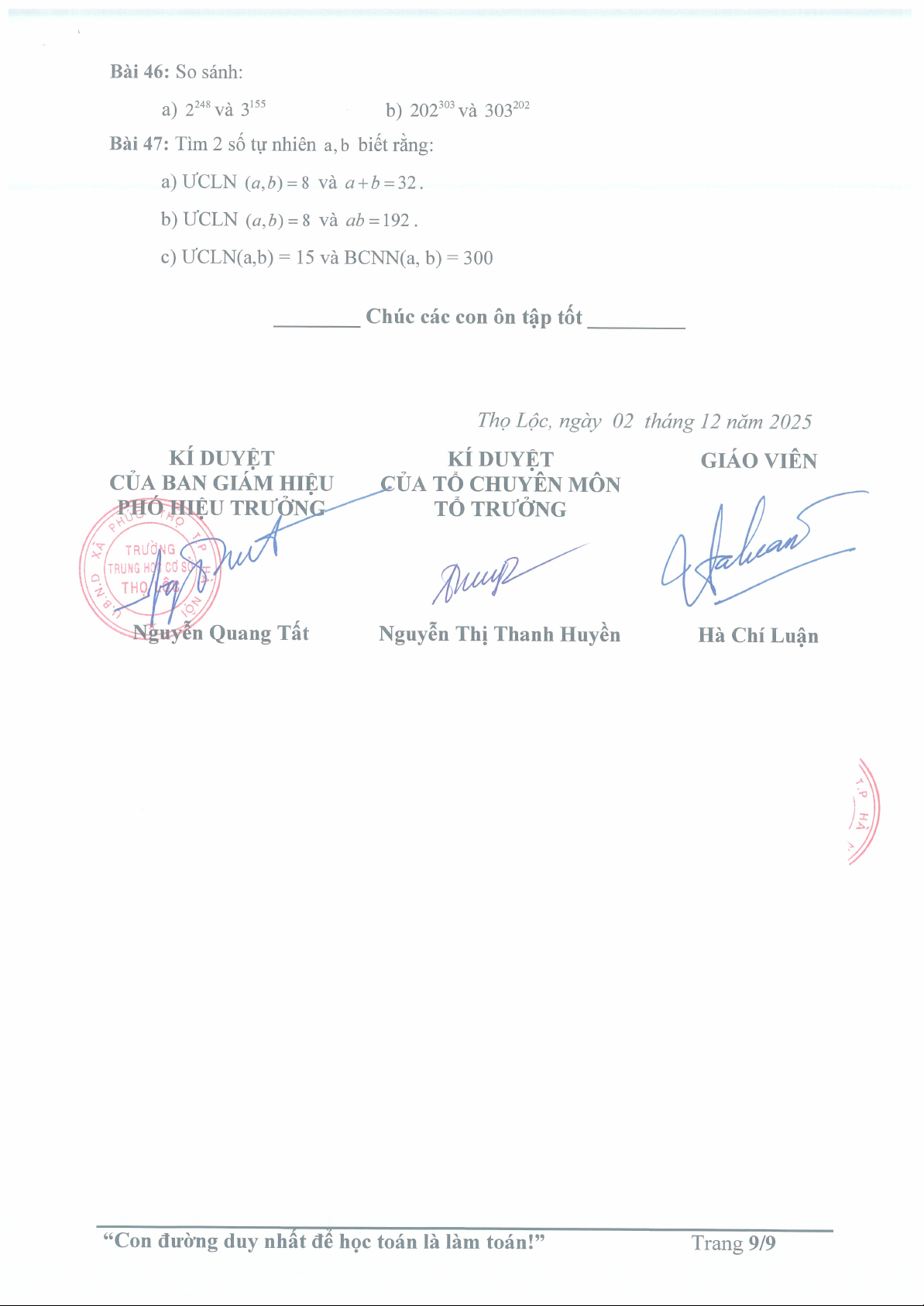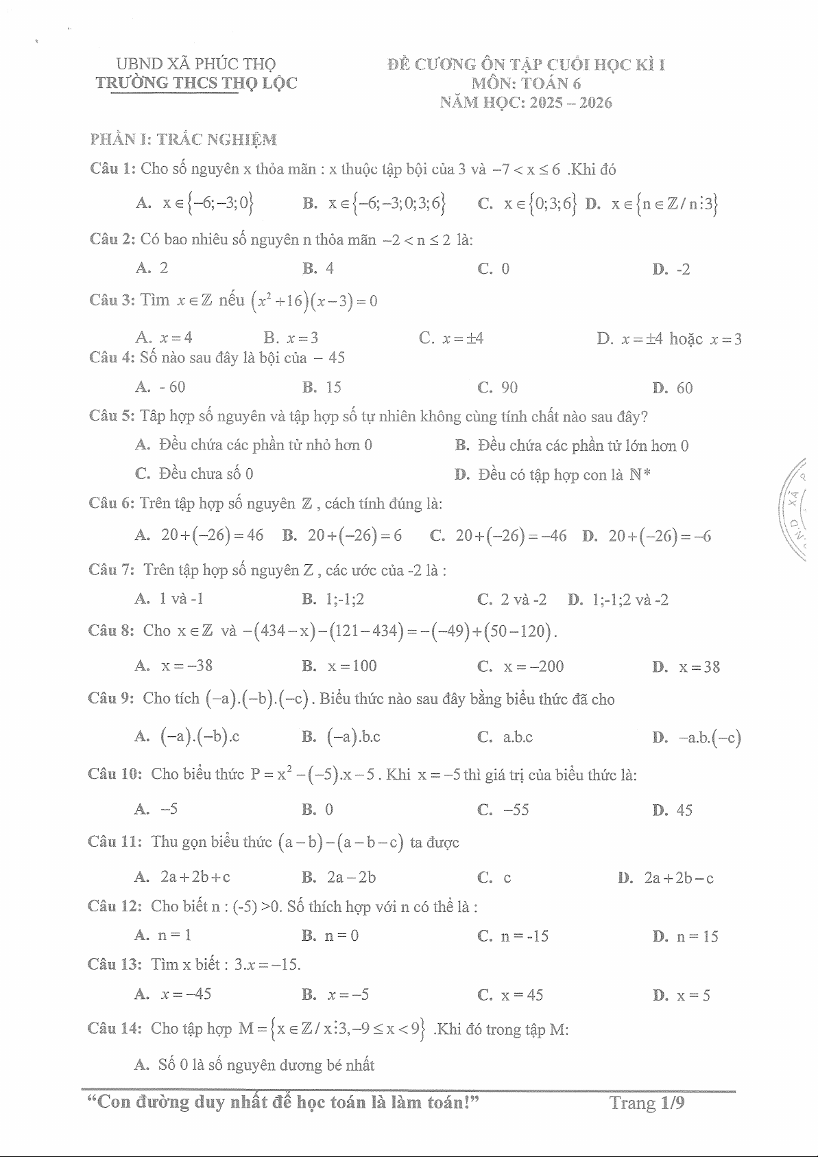 Xin giới thiệu đến quý thầy, cô giáo và các em học sinh đề cương ôn tập cuối học kì 1 môn Toán 6 năm học 2025 – 2026 trường THCS Thọ Lộc, xã Phúc Thọ, thành phố Hà Nội.