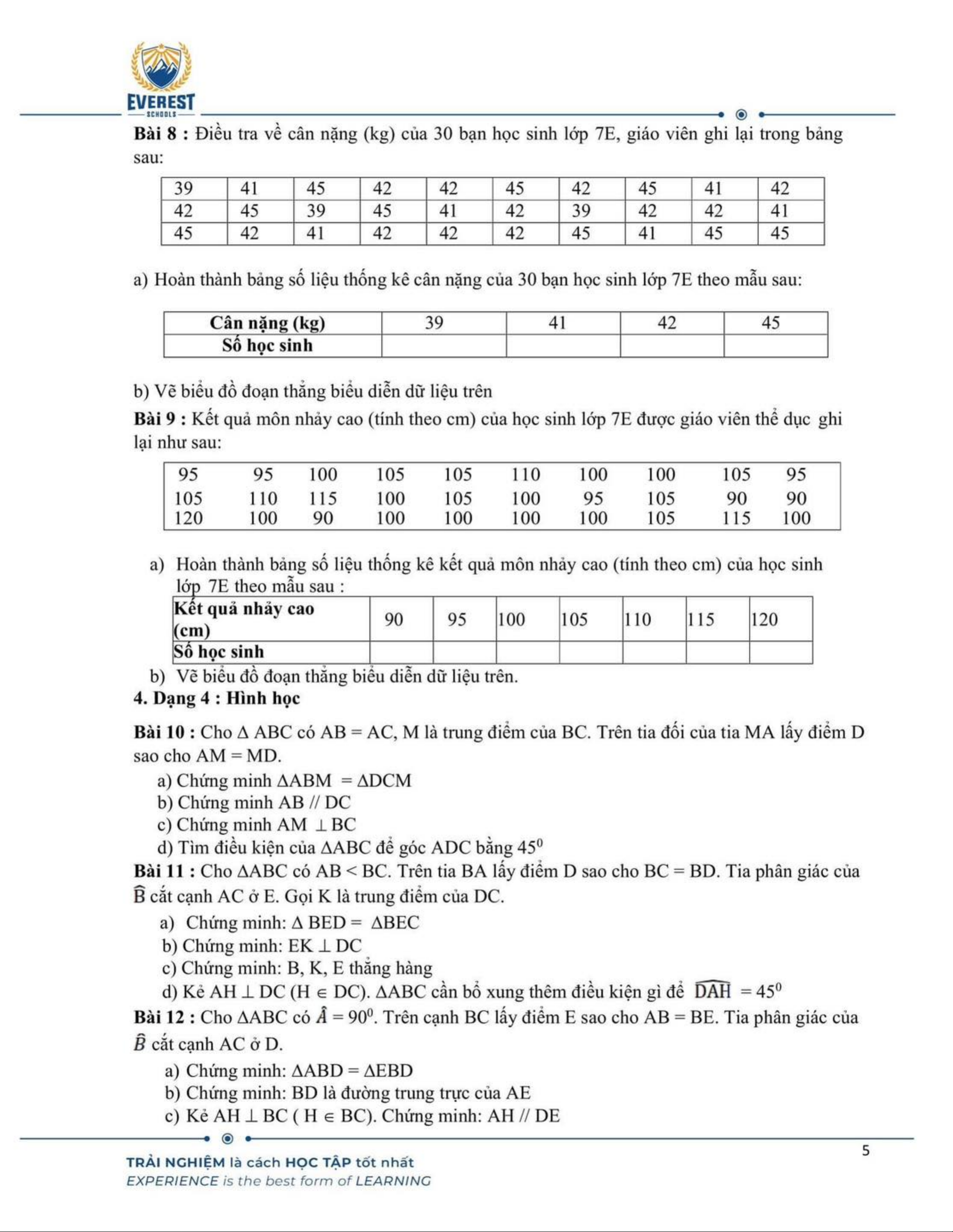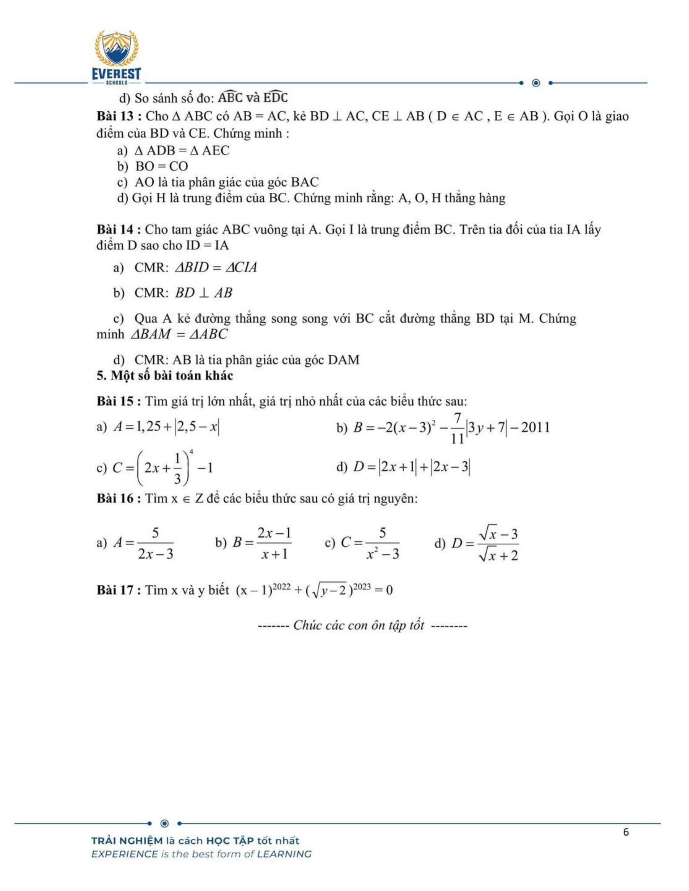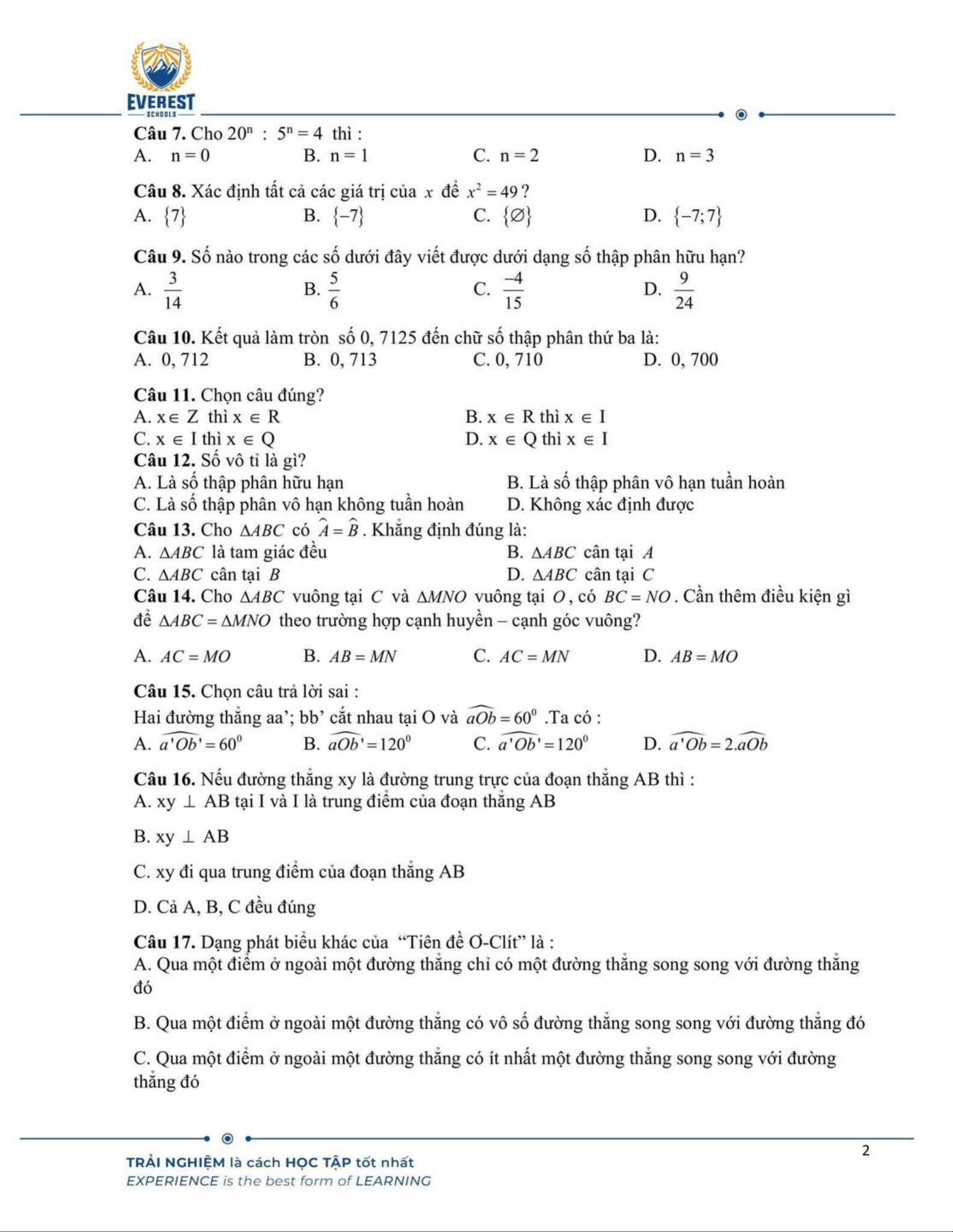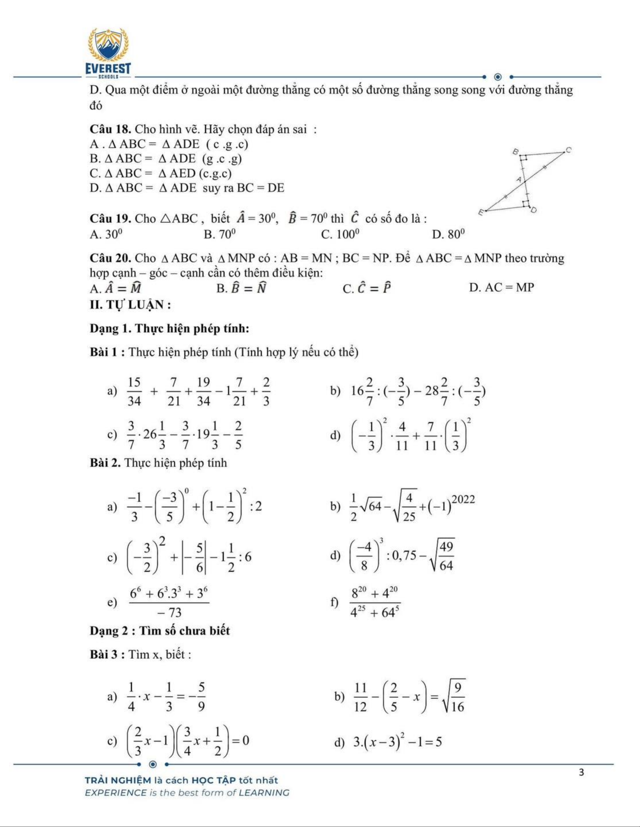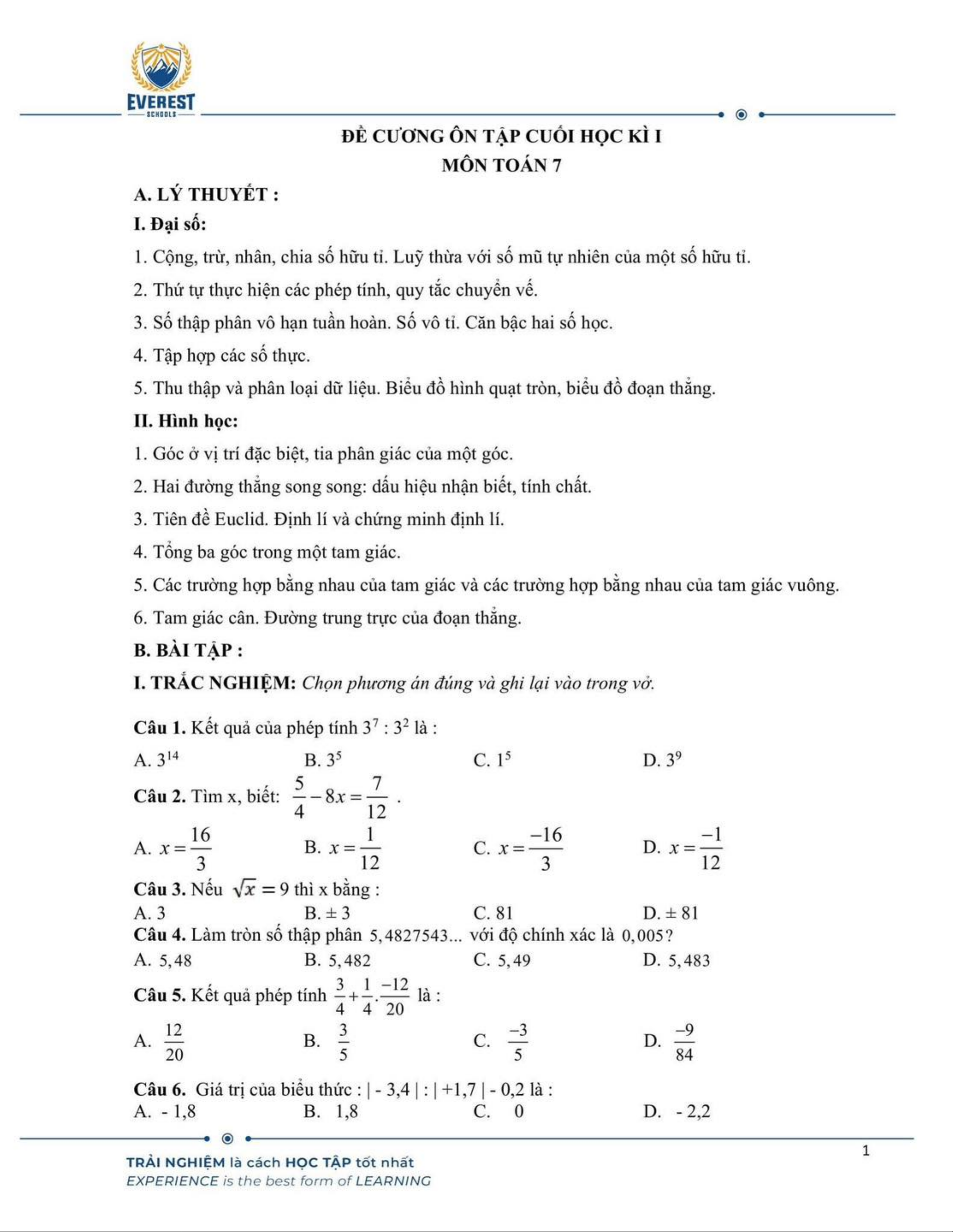 Đề cương cuối học kì 1 Toán 7 năm 2024 – 2025 trường Everest Schools – Hà Nội