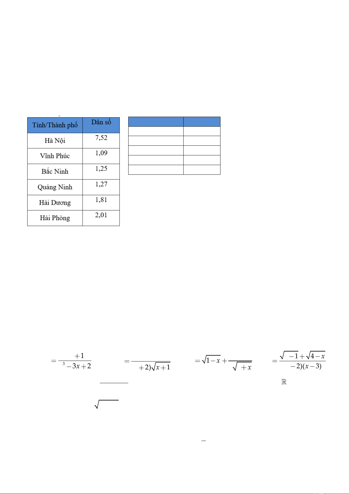 Bài 1. (0,5 điểm) Cho hai hàm số f x 2 1 x 1 ; g x 5 3 . x 3 17 x
