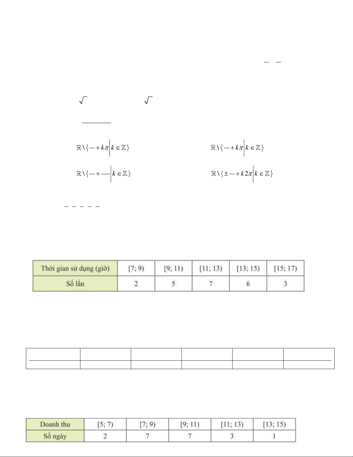 Câu 5. Để kiểm tra thời gian sử dụng pin của chiếc điện thoại mới, chị An thống kê thời gian sử dụng điện thoại