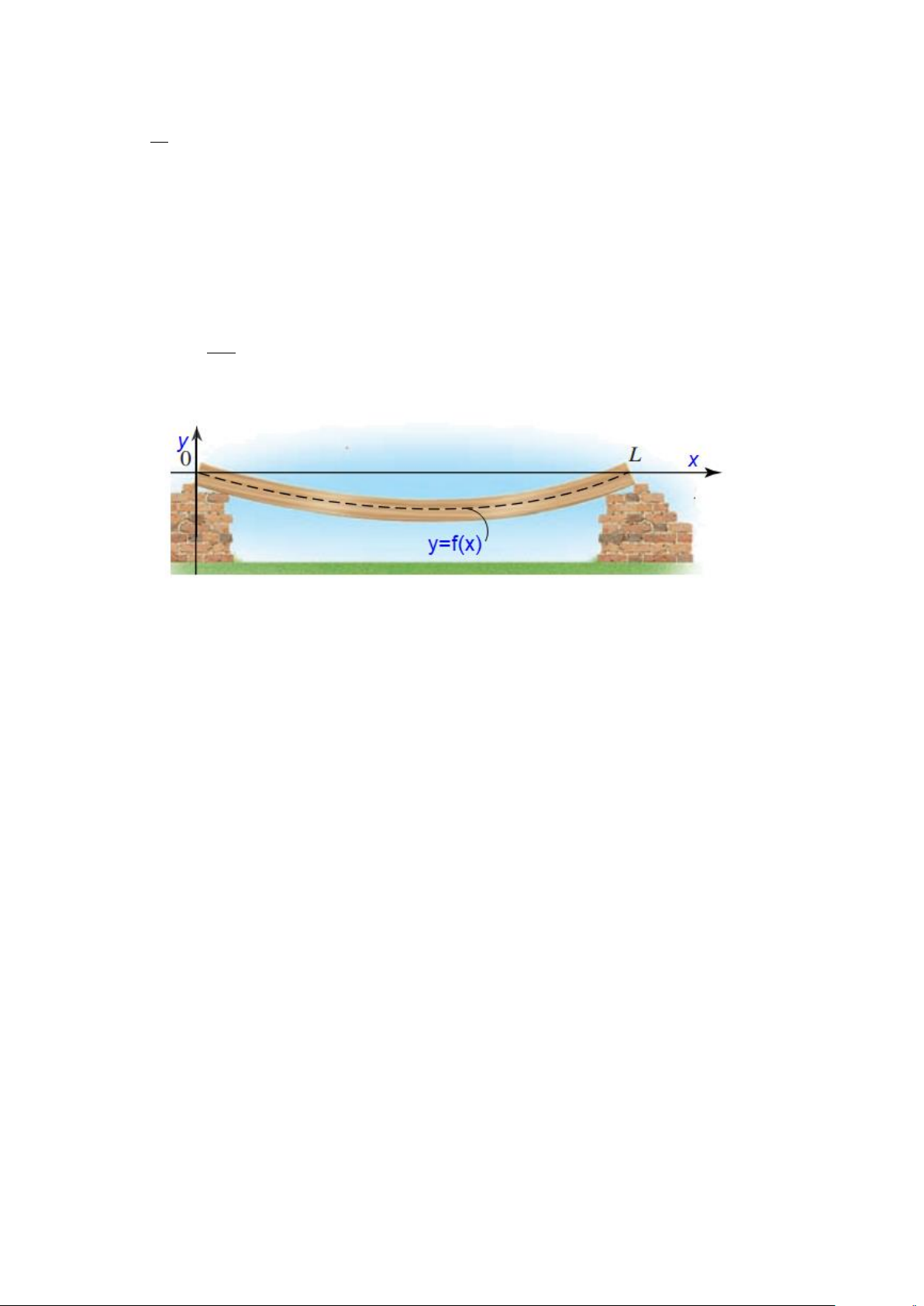 Câu 3. Một tấm ván gỗ chỉ được hỗ trợ ở hai đầu O và L , cách nhau 4 m. Tấm ván võng xuống dưới