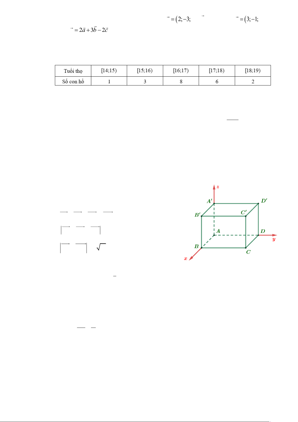 Câu 3. Trong không gian với một hệ trục tọa độ cho trước (đơn vị tính bẳng mét). Bạn Huyền quan sát