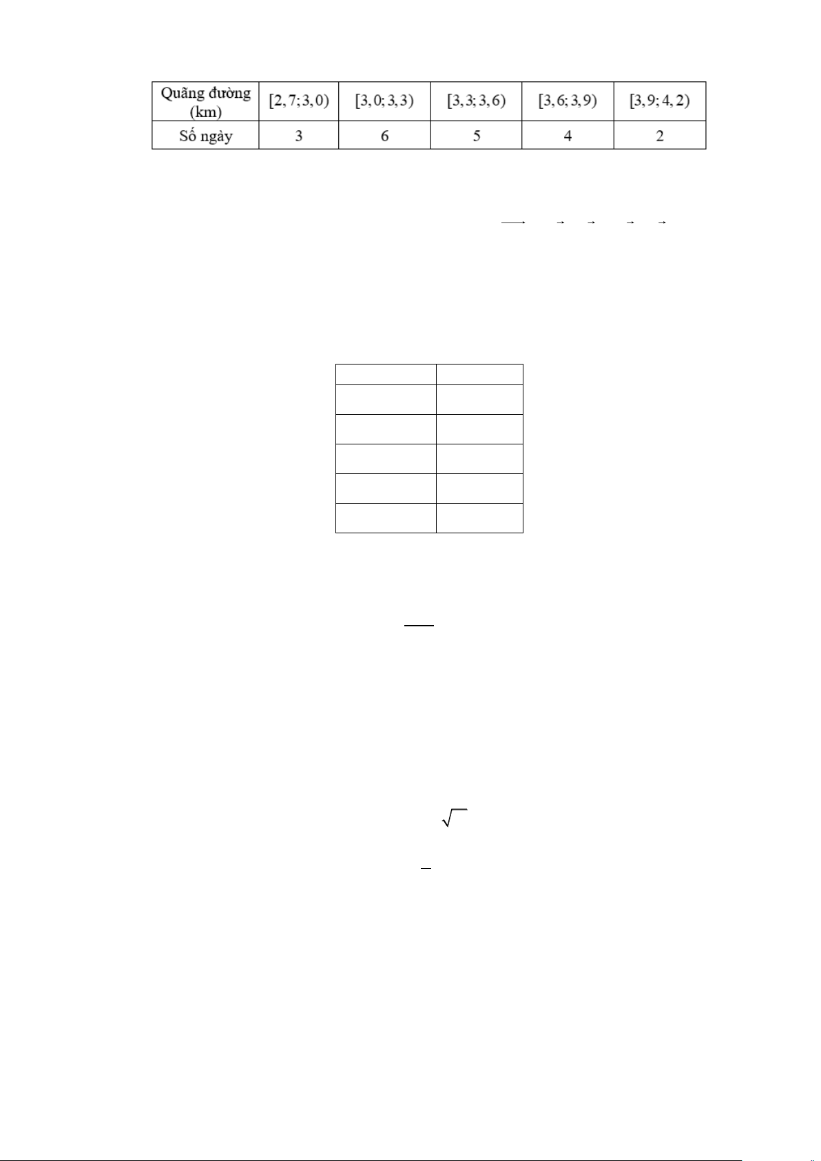 Câu 1. Hãy tính độ lệch chuẩn của mẫu số liệu ghép nhóm (kết quả được làm tròn đến hàng phần trăm)