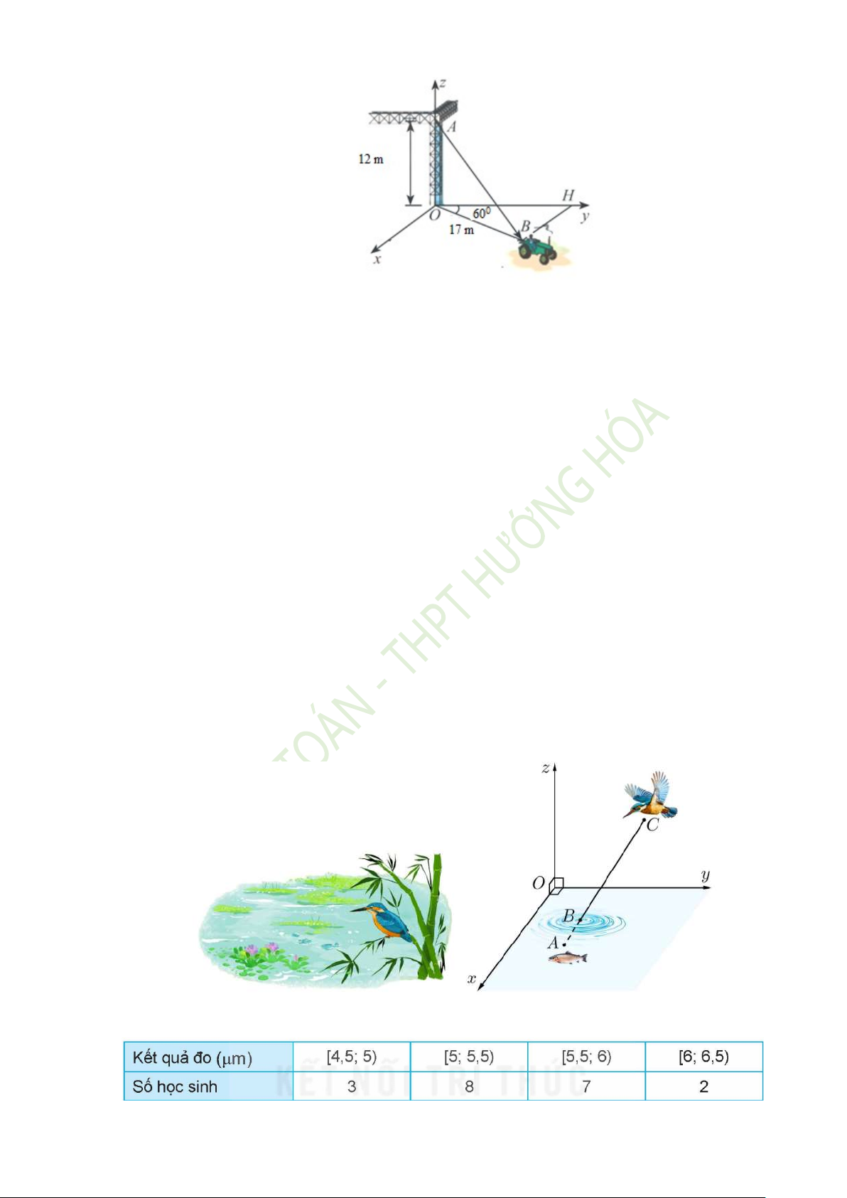 độ, tung độ và cao độ là các số thực dương) cách mặt nước 2m , cách mặt phẳng Oxz,Oyz lần lượt là