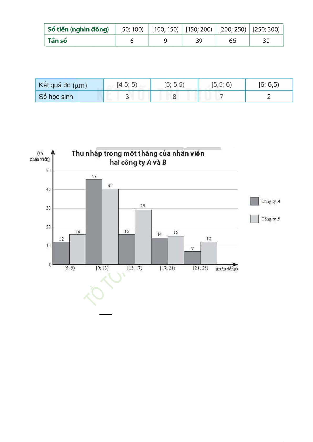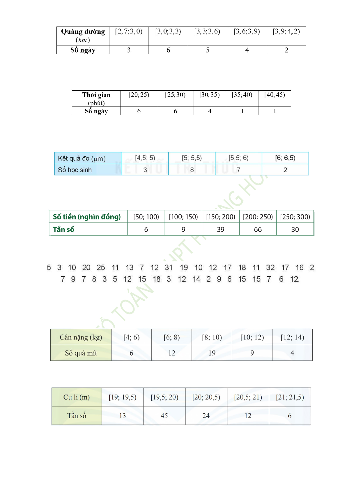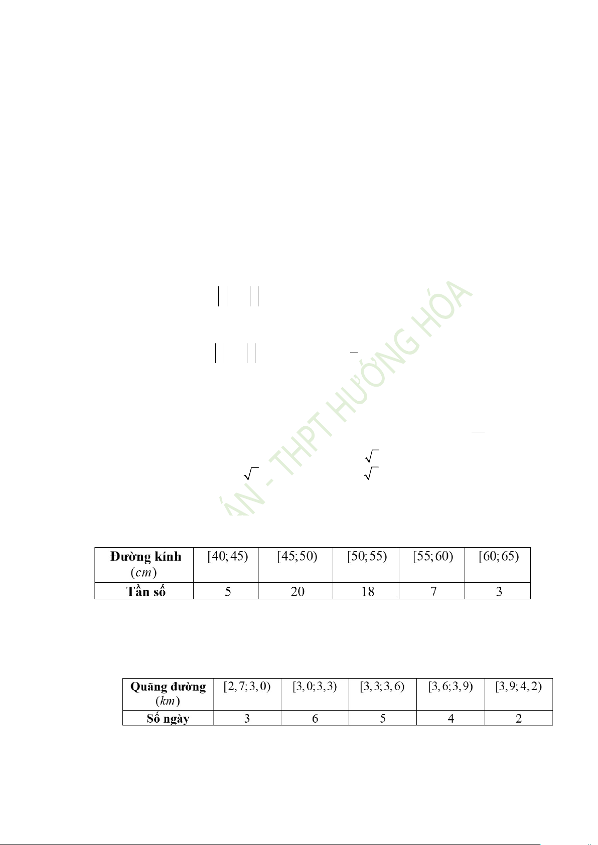 Câu 4.1. Một nhóm 20 học sinh dùng một thiết bị đo đường kính của một nhân tế bào cho kết quả như sau