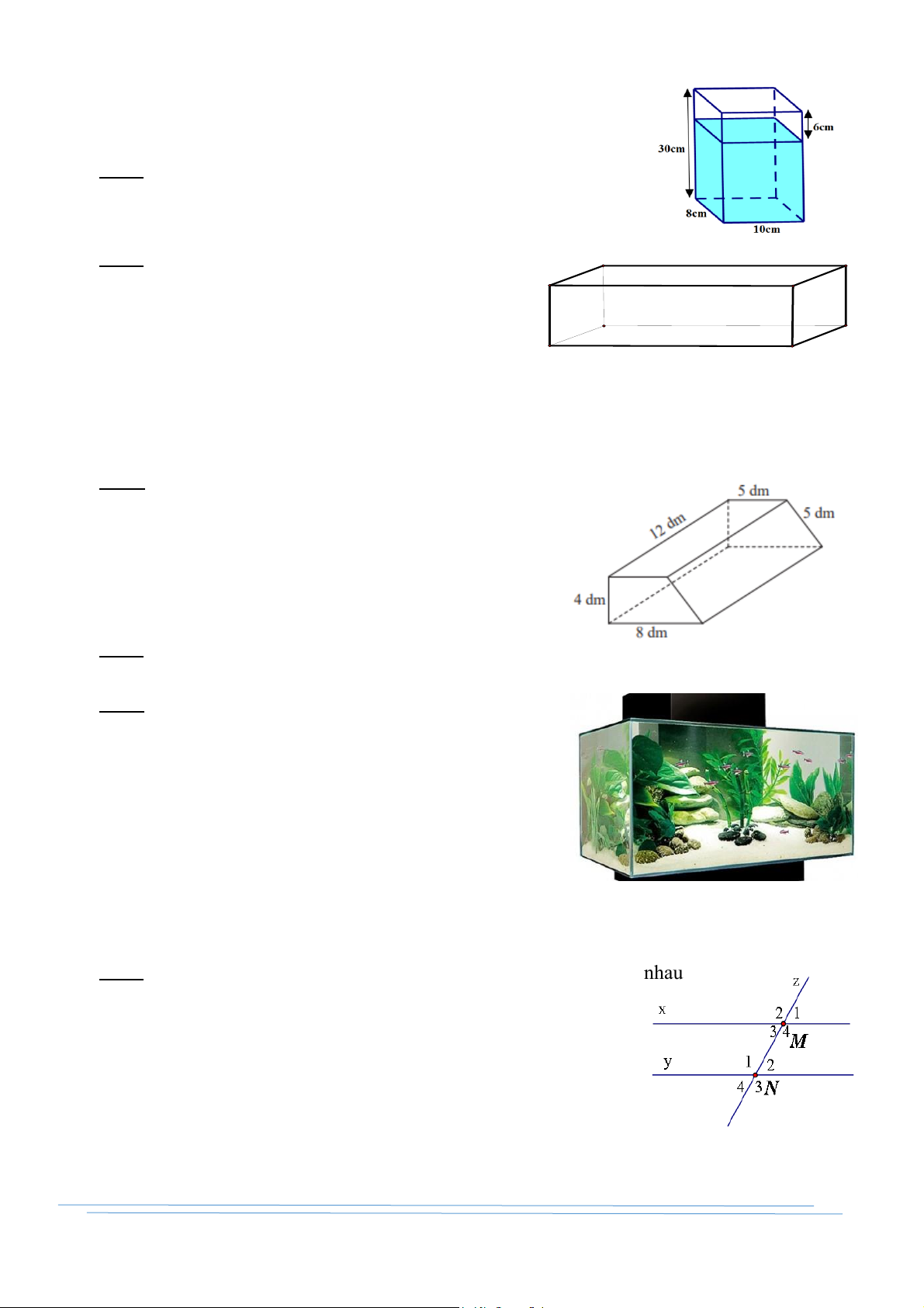 Bài 6: Một hồ cá có kích thước đáy là 30 cm và 40 cm,